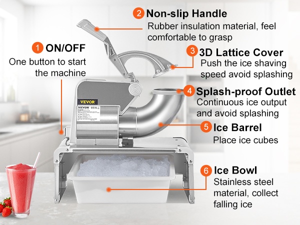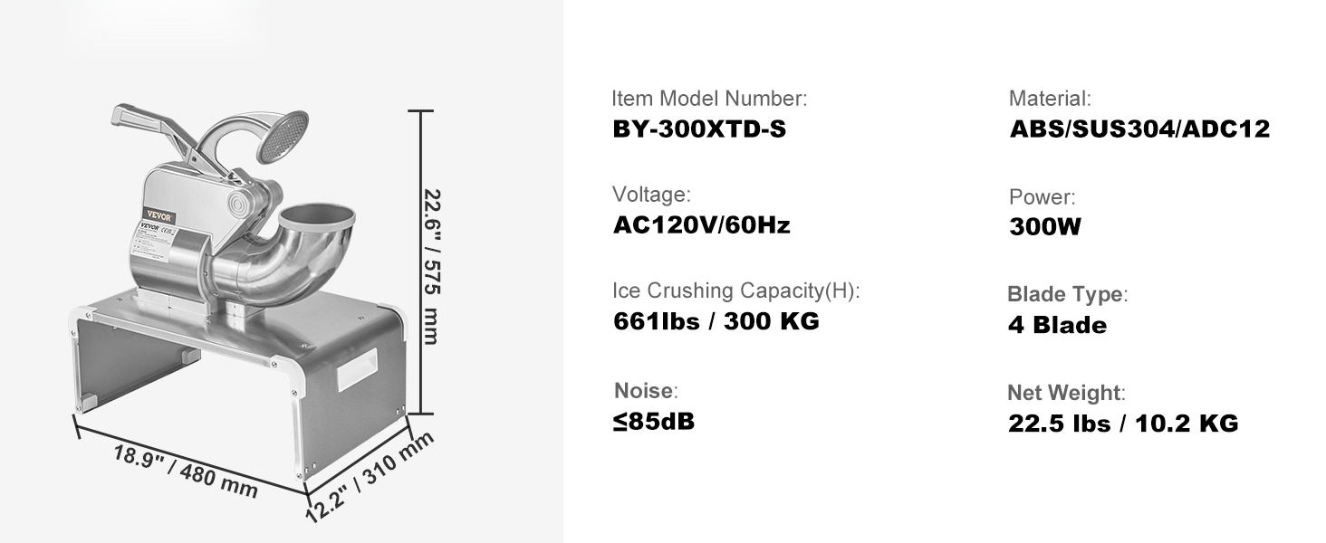 - Murskaa jopa 661 lbs jäätä tunnissa ja tekee pehmeää, lumimaista jäätä muutamassa minuutissa.