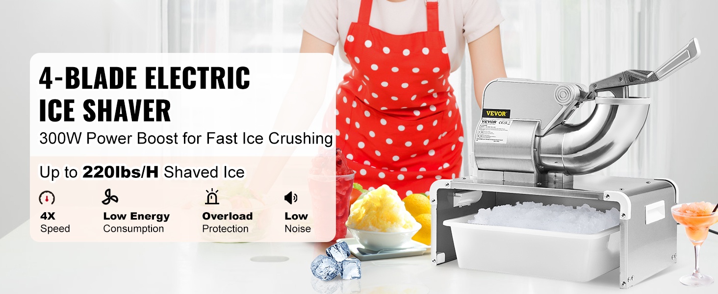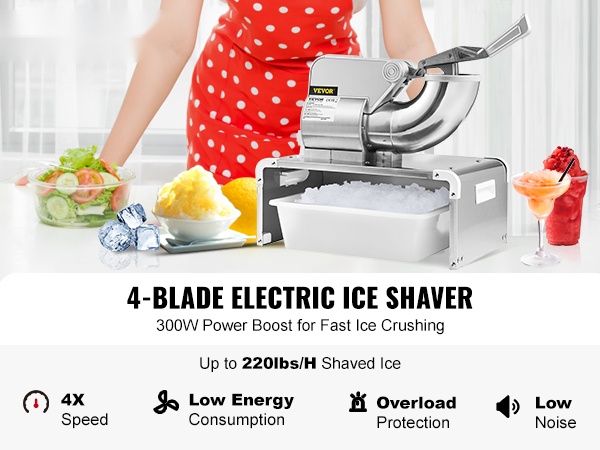 Tämä sähkökäyttöinen jäämurskain helpottaa juomien, jälkiruokien ja kylmien tarjoilujen valmistusta kotona tai ammattikäytössä. Integroitu rakenne, tehokas moottori ja suljettu sisätila pitävät työskentelyn siistinä ja turvallisena.