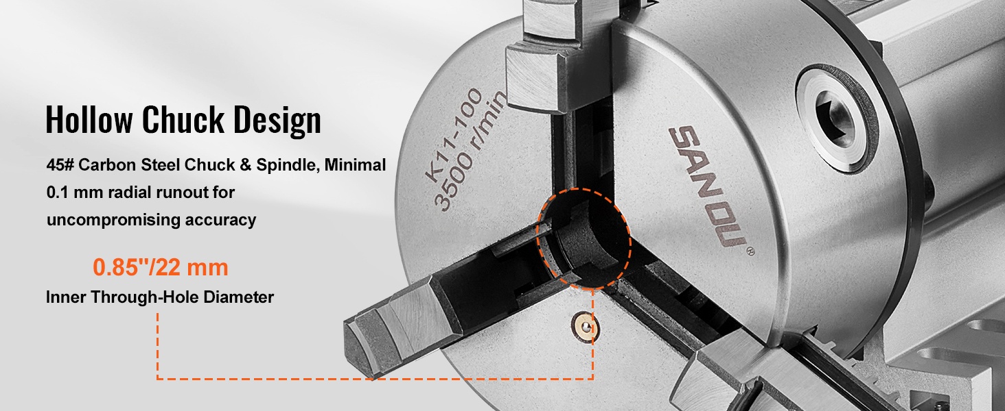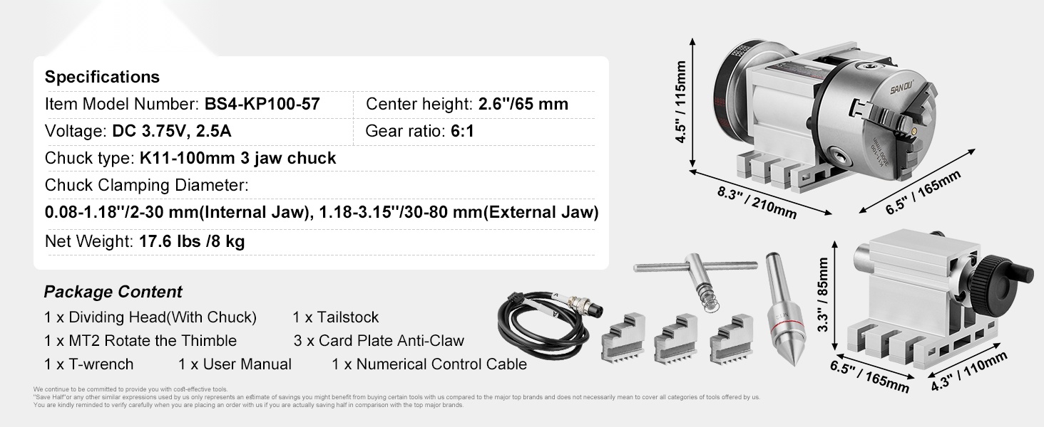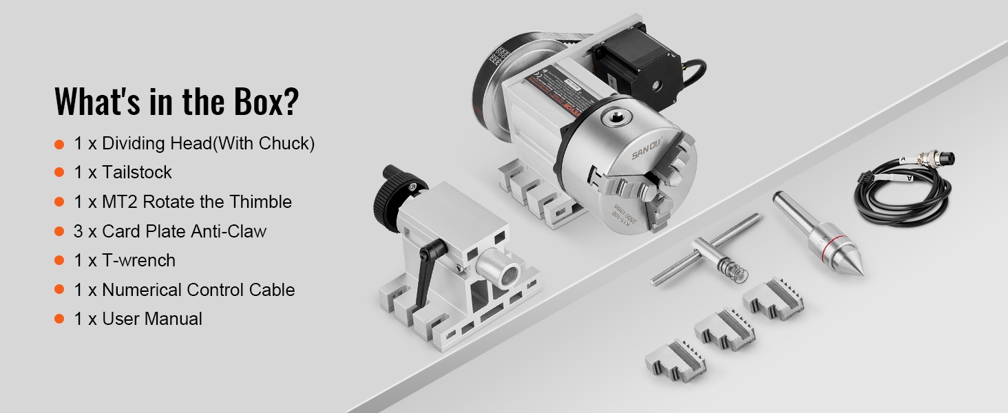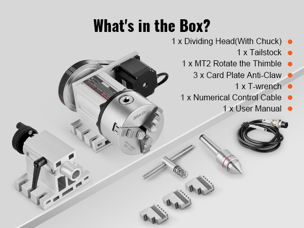 Tämä jako-osa tarjoaa CNC Rotational Axis 4th Axis -kiertoakselin, 6:1 välityssuhteen ja Nema23 2-vaiheisen askelmoottorin, mikä mahdollistaa tarkan ja toistettavan indeksoinnin laajalla kulmavalikoimalla. K11-100MM 3-leukapakka lisää työtehokkuutta ja helpottaa monimutkaisten muotojen työstöä.