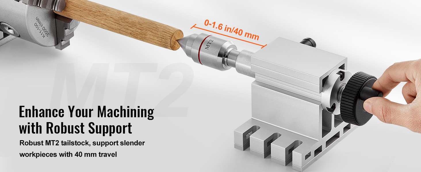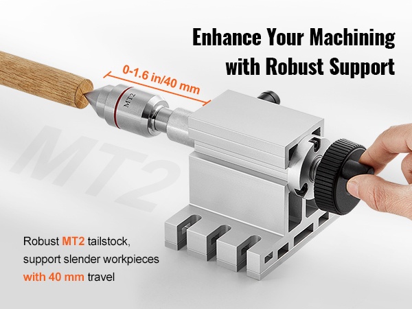 Jako-osa on varustettu tukiporralla, jossa on MT2-kartio ja 0–1.6"/40 mm liikevara. Tämä mahdollistaa kappaleen tarkan tuennan ja keskittämisen esimerkiksi leikkaus-, kaiverrus- ja muissa tarkkuutta vaativissa työstökohteissa.