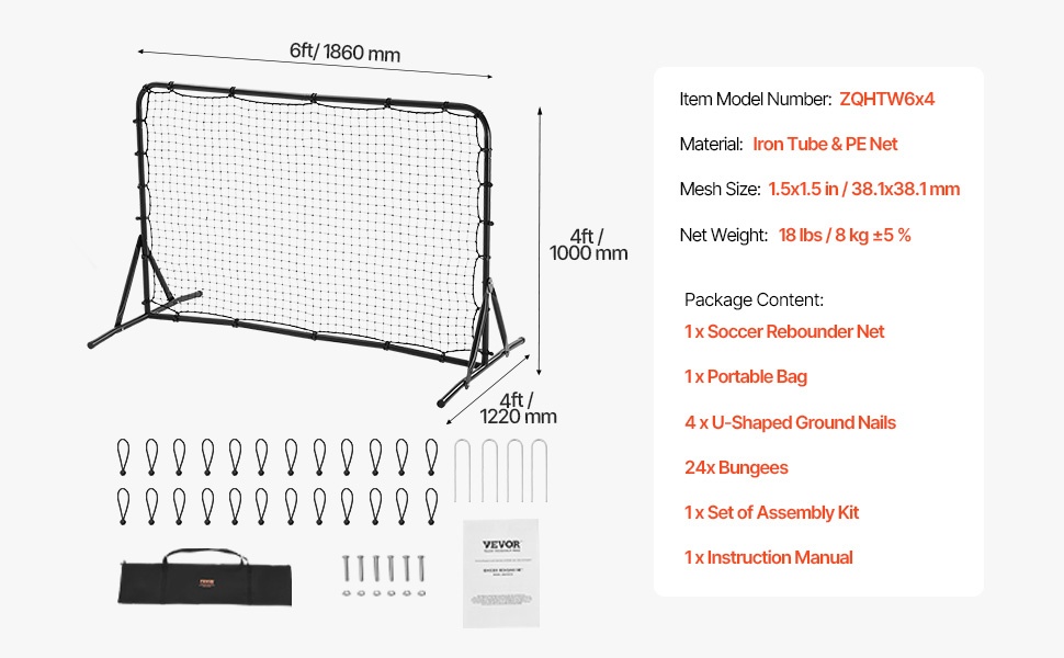 Palautusverkossa on paksunnettu rautaputkista tehty runko, joka antaa hyvän lujuuden ja vakauden. Tukevaksi mitoitettu rakenne kestää toistuvaa käyttöä harjoituksissa.