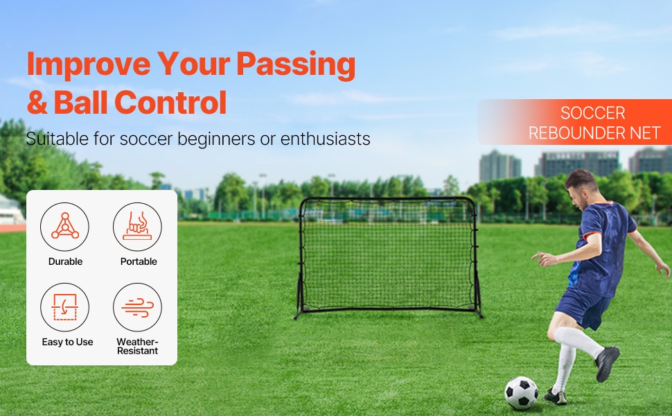 Käytännöllinen jalkapallon palautusverkko, koko 34"x34", sopii taitoharjoitteluun eri ikäisille pelaajille. Säädettävän kulman ansiosta voit harjoitella syöttöjä, laukauksia ja ensimmäistä kosketusta erilaisilla palautuskorkeuksilla. Tukeva rakenne ja taittuva runko helpottavat käyttöä, säilytystä ja siirtämistä.