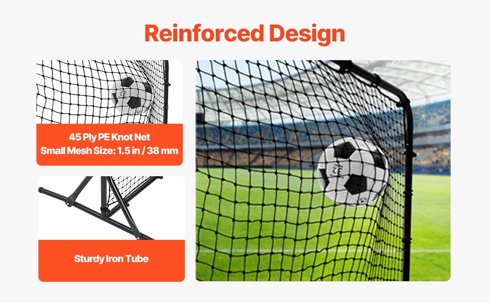 Jalkapallon palautusverkko rautaputkesta 40×35×37 tuumaa säädettävä taittuva kevyt maakiiloilla