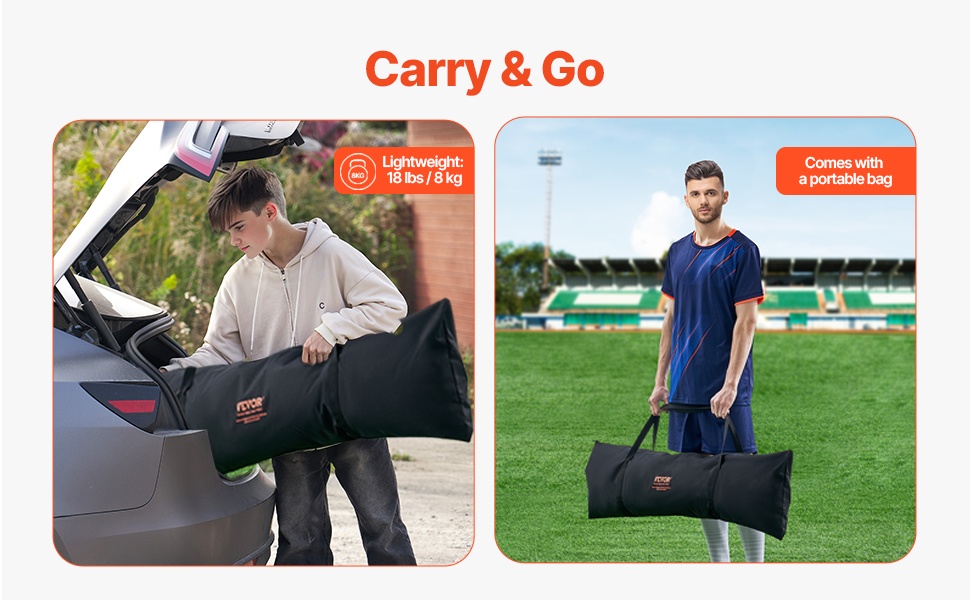 Kevyen rakenteen vuoksi jalkapalloverkon siirtäminen on vaivatonta. Voit ottaa sen mukaasi kouluun, puutarhaan, puistoon tai rannalle ja harjoitella siellä, missä sinulle sopii.
