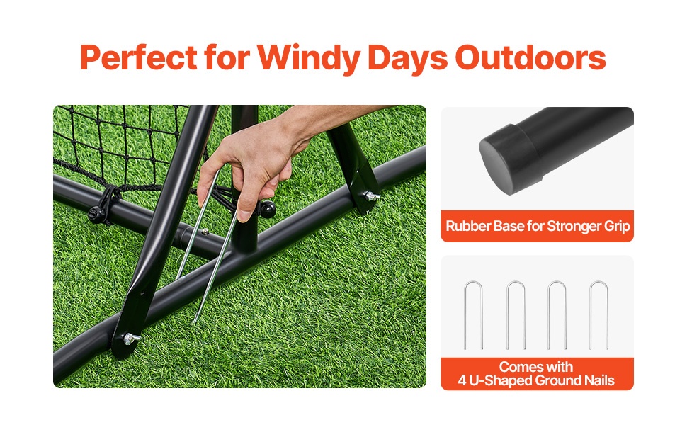 Mukana tulevat maakiilat pitävät palautusverkon tukevasti kiinnitettynä maahan. Näin voit keskittyä harjoitteluun ilman, että verkko siirtyy paikaltaan laukauksista ja syötöistä.