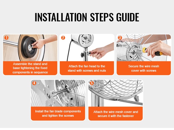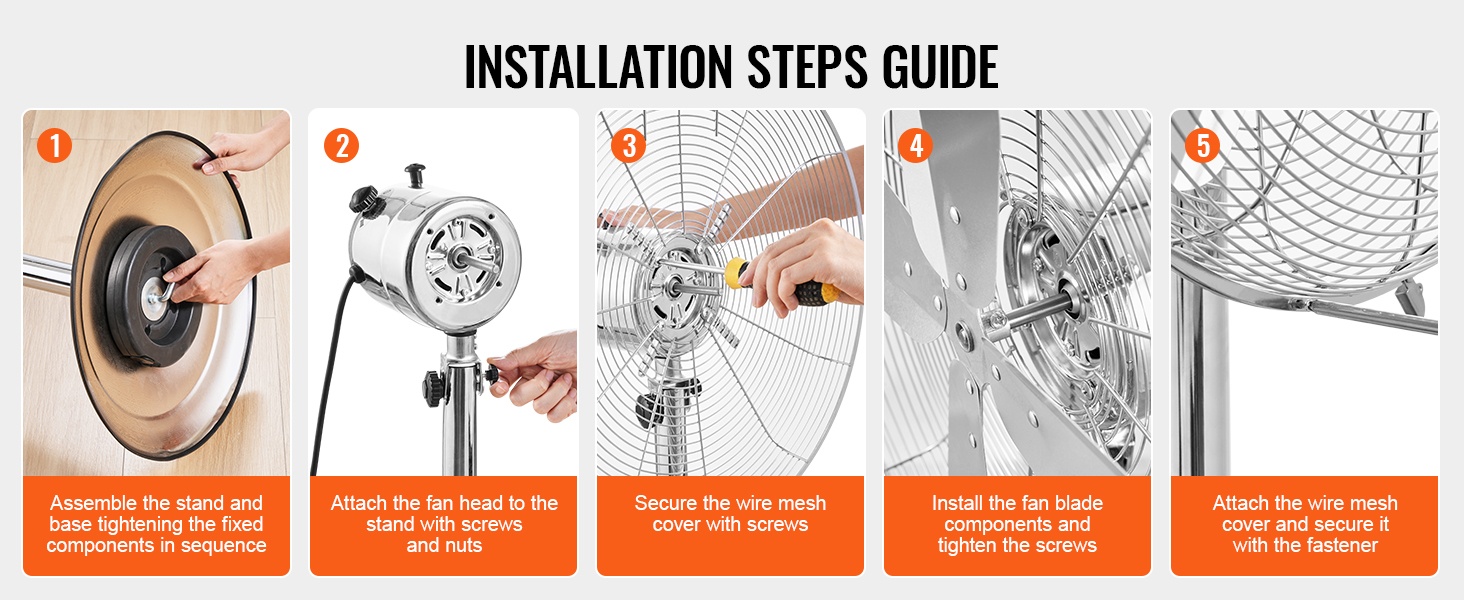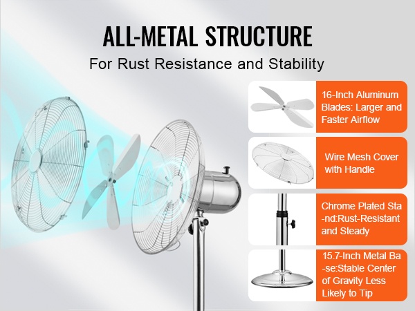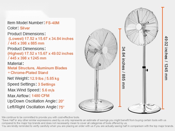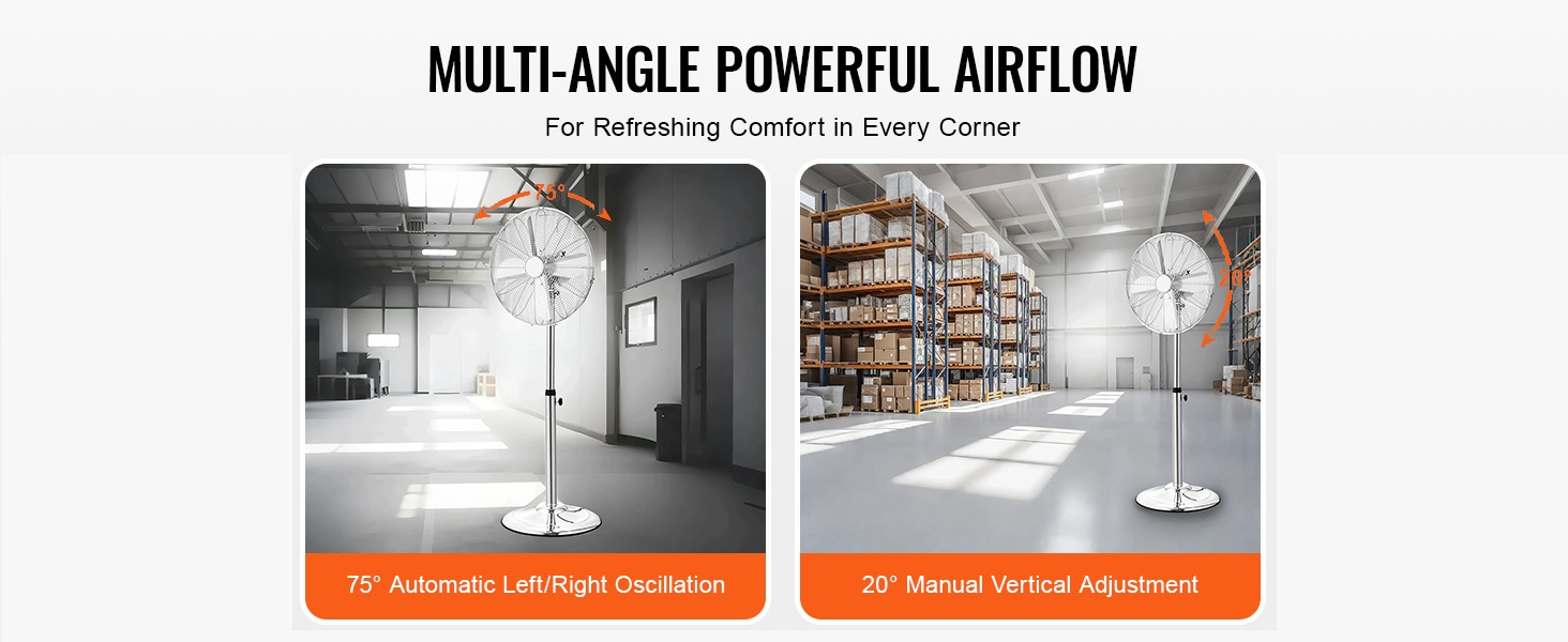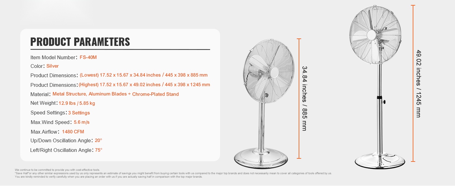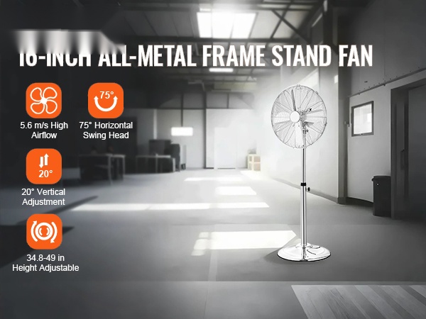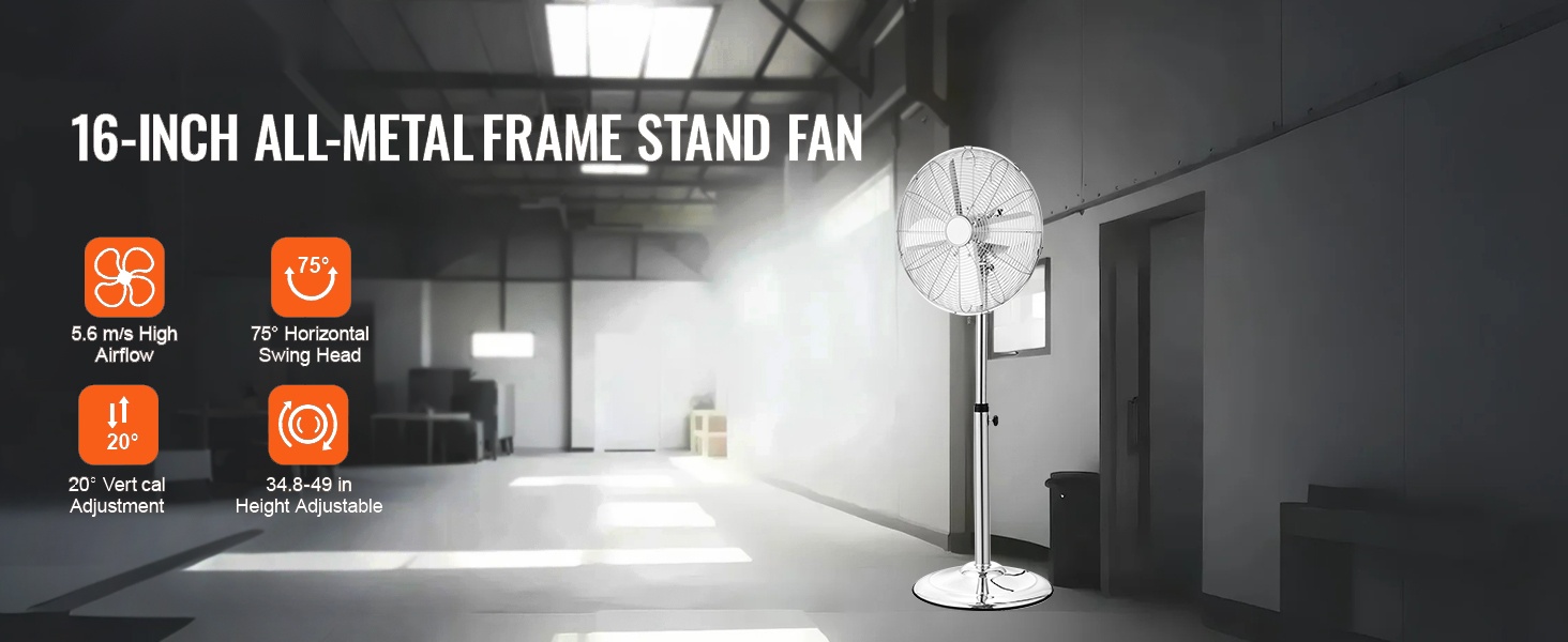 Tämä jalustatuuletin on valmistettu tukevasta metallirungosta ja vankasta jalustasta, mikä takaa hyvän vakauden ilman ruostumisen tai kaatumisen riskiä. 3-nopeuksinen moottori toimii hiljaisella äänentasolla. Tuuletinta voi säätää korkeussuunnassa ja kääntökulman osalta, ja suojaverkko parantaa käyttöturvallisuutta. Sopii hyvin kesäiseen viilennykseen eri huoneissa.