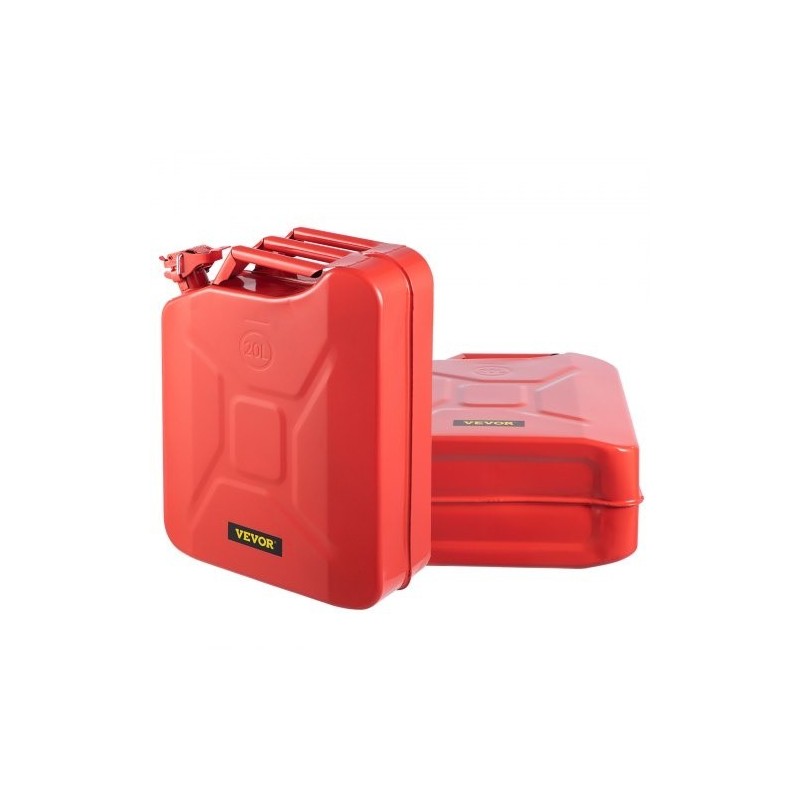 Teräksinen 20 L jerry-kanisteri (2 kpl) polttoaineen turvalliseen kuljetukseen ja varastointiin. 5.3-gallonan säiliö tarjoaa riittävästi varapolttoainetta pitkille ajomatkoille, ja joustava kaatonokka helpottaa nopeaa ja siistiä tankkausta. Teräsrakenne kestää paremmin iskuja ja lämpöä kuin muovikanisterit.