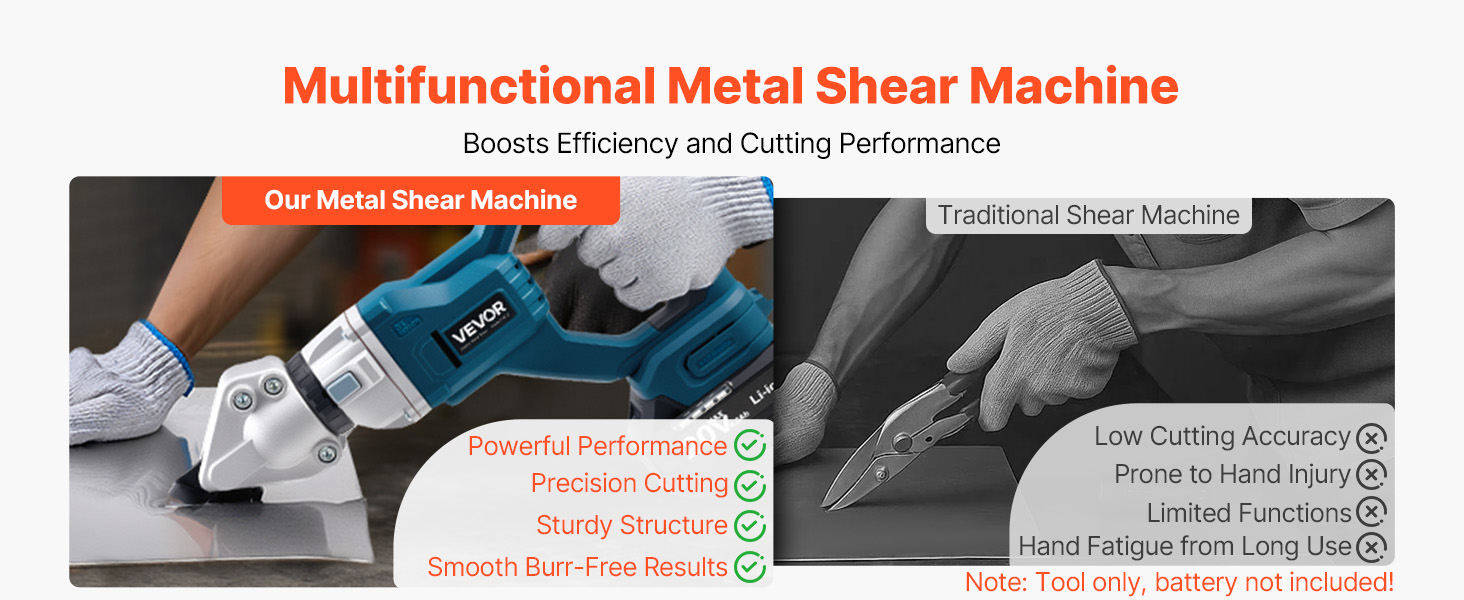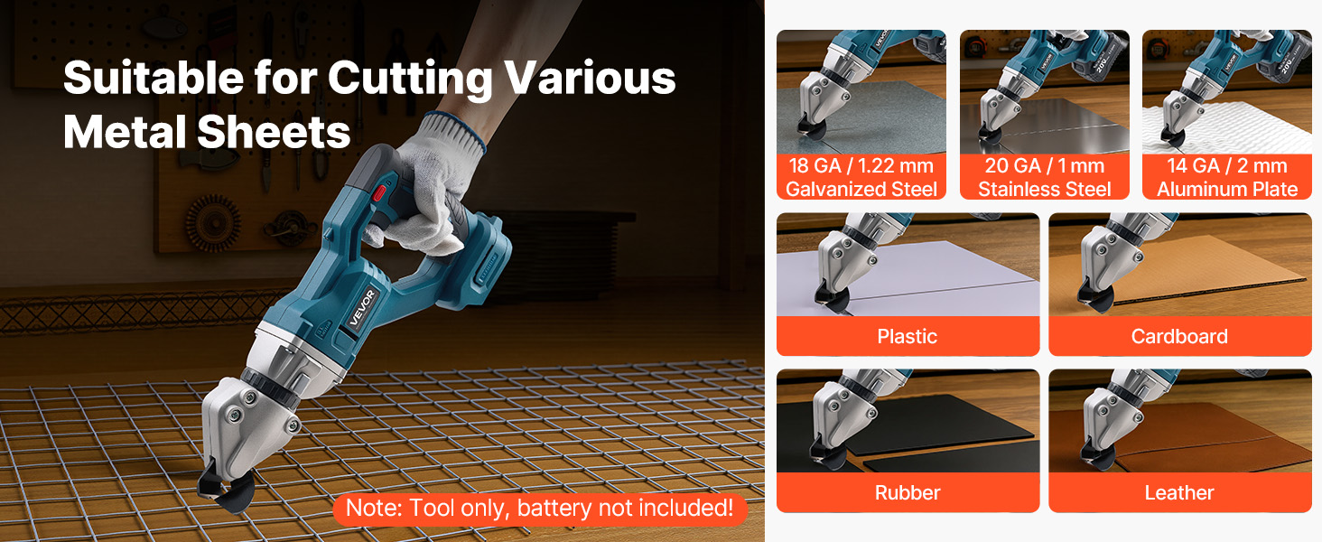 Sähkökäyttöinen leikkuri on suunniteltu monille eri materiaaleille. Se leikkaa vaivattomasti metallilevyjä, muovia, pahvia, kumia ja nahkaa, joten se sopii hyvin pajoihin, autotalleihin ja kotikäyttöön erilaisissa projekteissa.