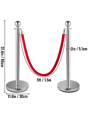 Jononohjaustolppasarja 6 kpl ruostumatonta terästä betonipohjilla 90 cm 1,5 m punainen samettiköysi