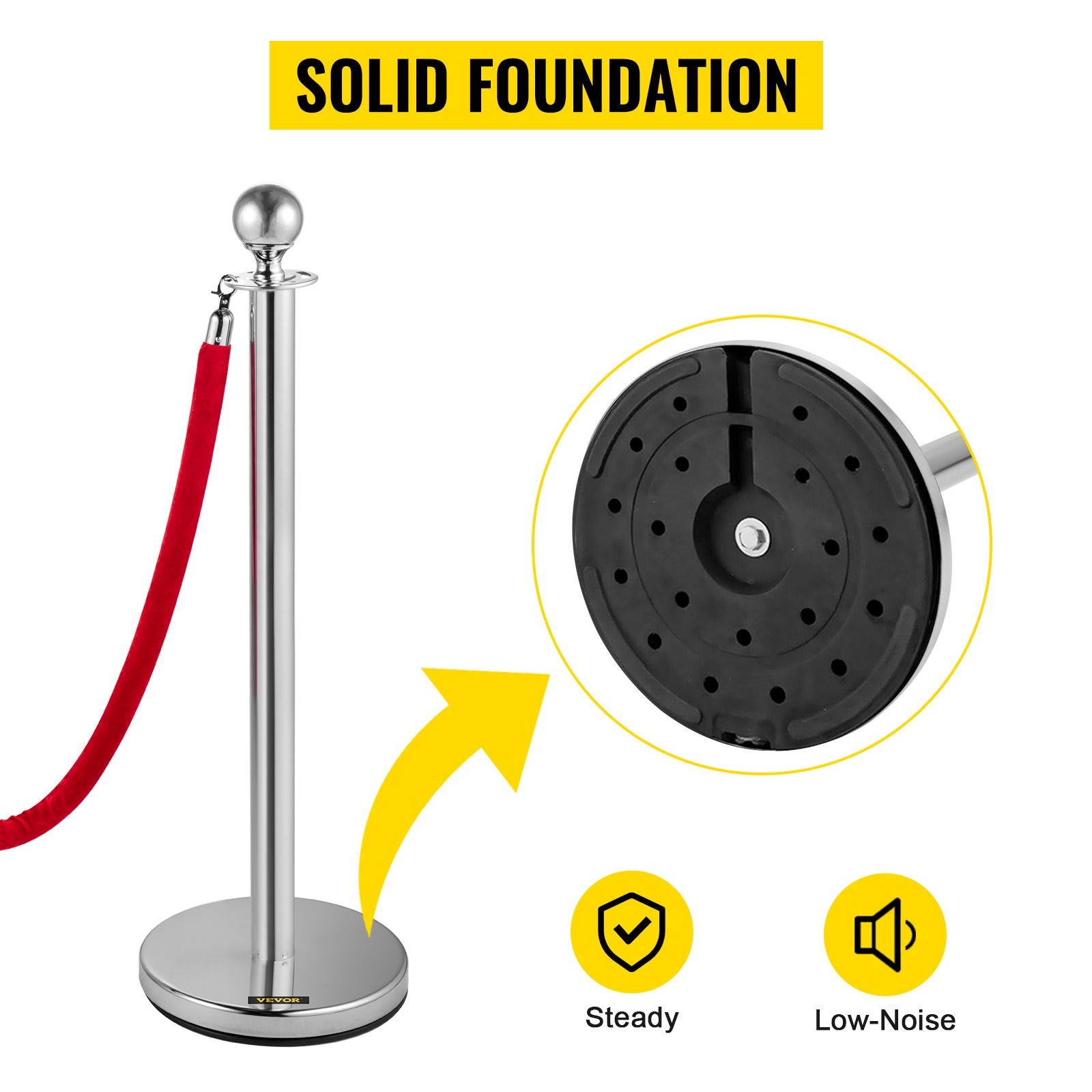 Painava metallijalusta ja pohjassa olevat kumisuojat parantavat vakautta ja suojaavat lattiaa naarmuilta. Kumipinta lisää kitkaa lattian ja tolpan välillä, jolloin tolppa pysyy tukevasti paikoillaan.