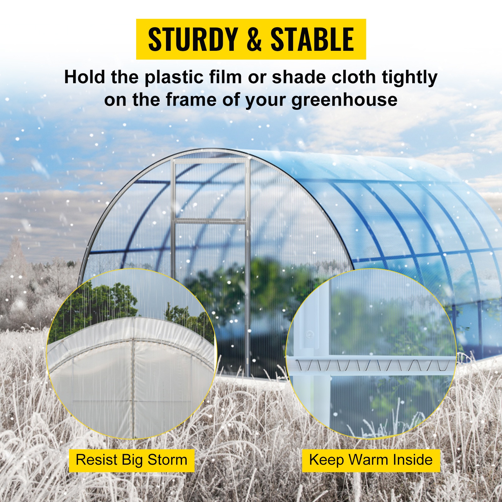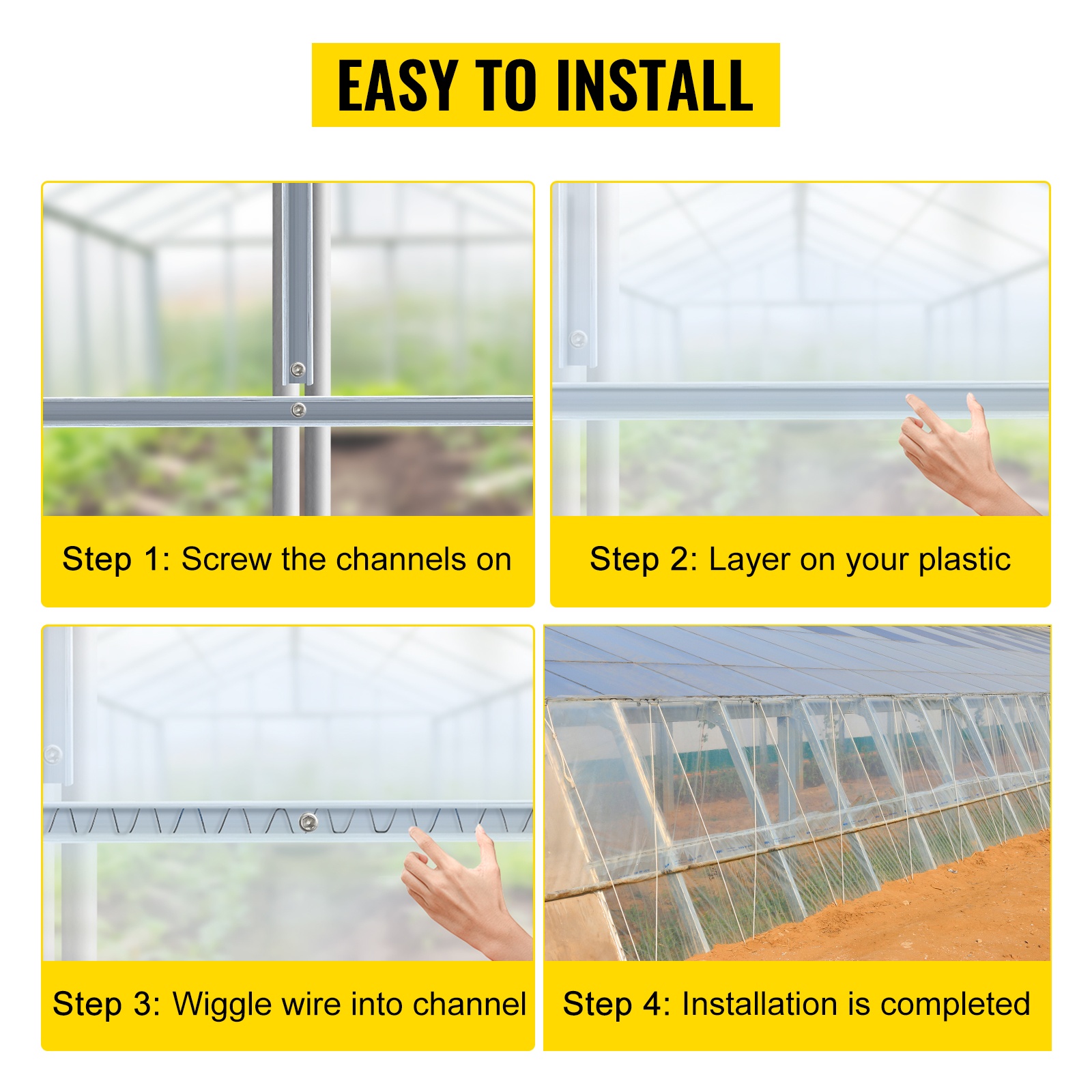 Jousilangan ja lukituskanavan yhdistelmä pitää muovikalvon tai varjoverkon tiukasti kasvihuoneen rungossa, auttaa kestämään kesämyrskyjä ja säilyttämään lämmön talvella.
