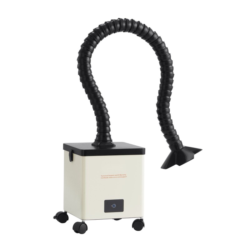 Laite poistaa juotossavun ja hienot hiukkaset suoraan työkohteen läheltä. 100W moottori ja 240m³/h ilmavirta varmistavat, että savu ei leviä huoneeseen, vaan kulkeutuu nopeasti suodattimien läpi.