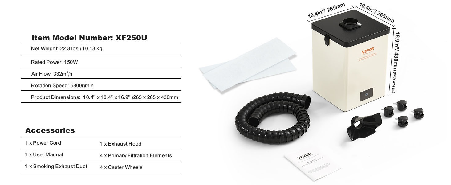 - Tehokas 100W moottori ja 240m³/h ilmavirta nopeaan savun poistoon