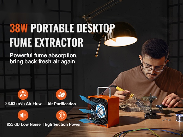 Pidä työtila puhtaana ja hengitysilma raikkaana tehokkaalla juotoshuuruimulla, joka poistaa savun ja haitalliset hiukkaset suoraan lähteestä. Kompakti laite sopii hyvin elektroniikkatyöpöydille, korjauspisteisiin, kauneus- ja kynsistudioihin, tulostukseen, hitsaukseen ja muihin savua tai pölyä tuottaviin töihin.