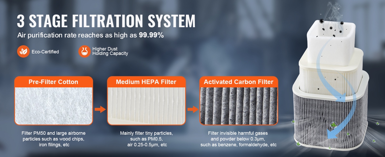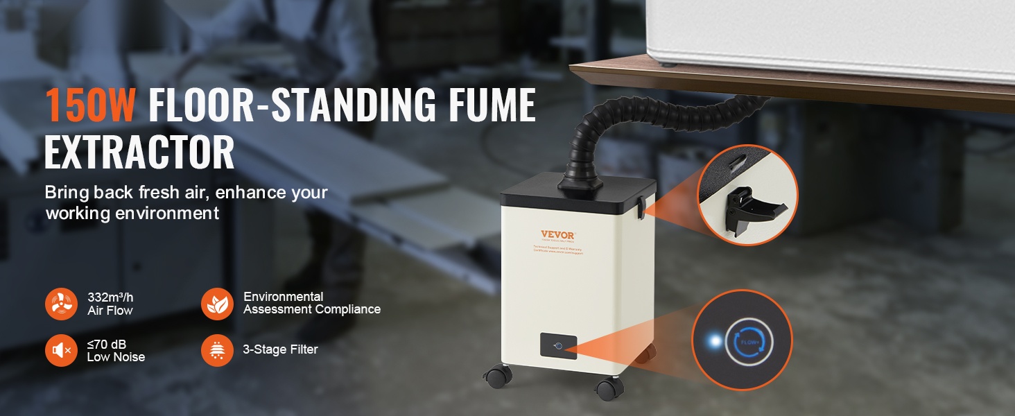 Kolmitasoinen suodatinrakenne vangitsee haitalliset kaasut ja pienhiukkaset, jotta poistoilma täyttää tiukatkin ympäristö- ja työturvallisuusvaatimukset. Puhdistustehokkuus ylittää useimpien tavallisten huurusieppareiden tason ja auttaa suojaamaan terveyttä pitkäaikaisessa käytössä.