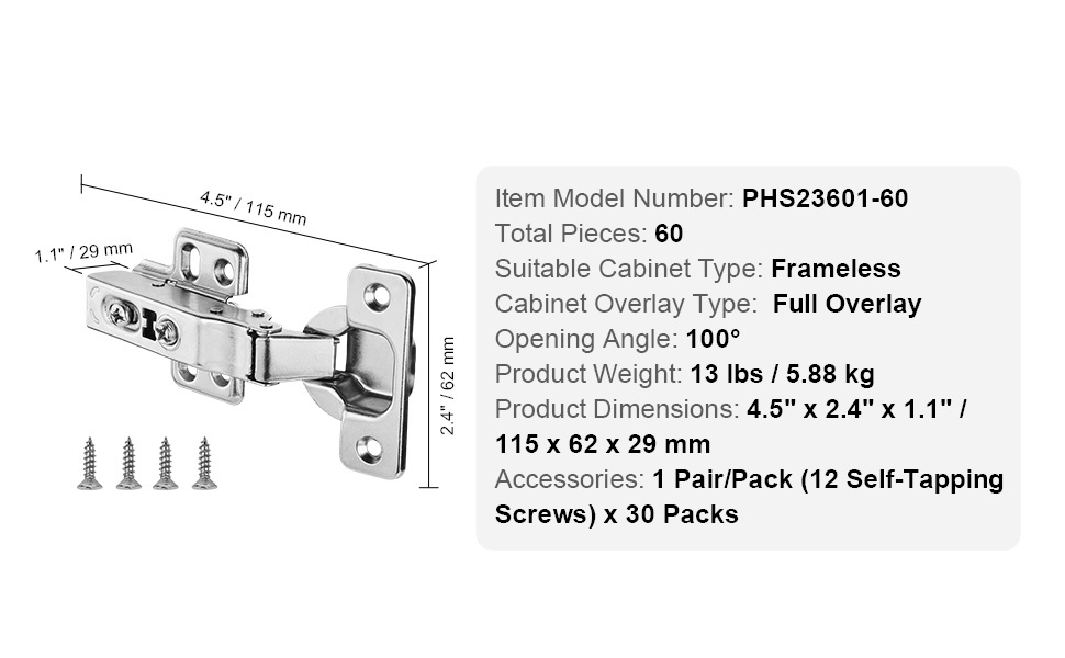 - Pakkaus sisältää yhteensä 60 saranaa kiinnitysruuveineen