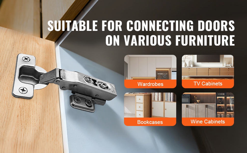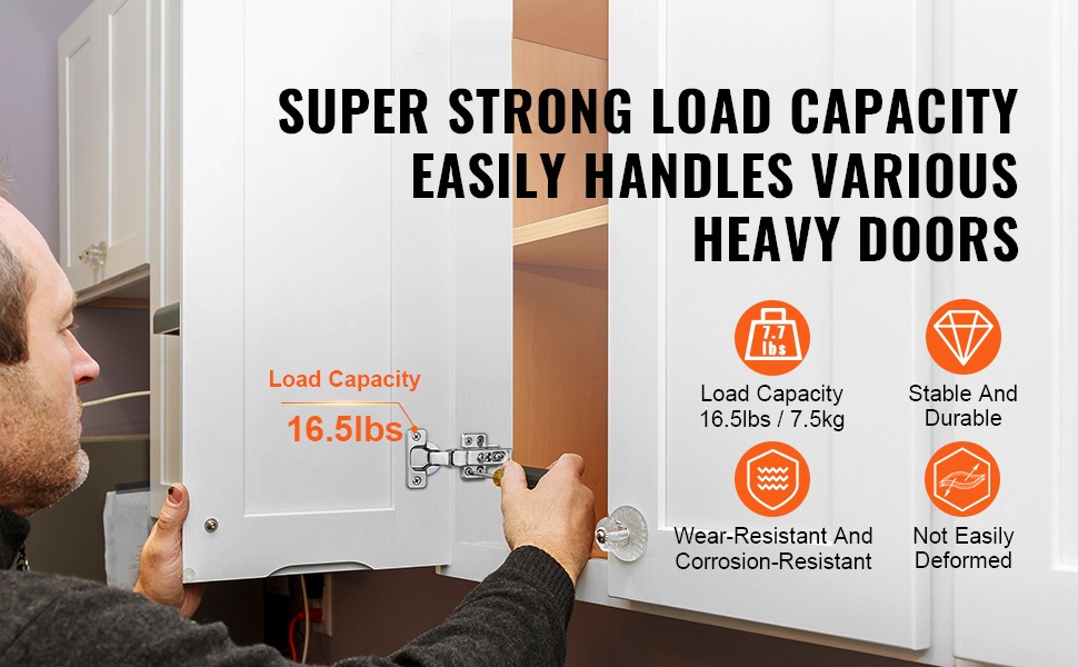 Yksi saranapari kestää jopa 7.7 lb (paunaa) oven painoa, joten myös raskaammat kaapinovet pysyvät tukevasti paikallaan ja käytössä luotettavina.