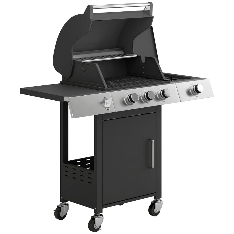 Kaasugrilli 10,5 kW 3+1 poltinta teräsrunko valurautaritilä sivupoltin musta