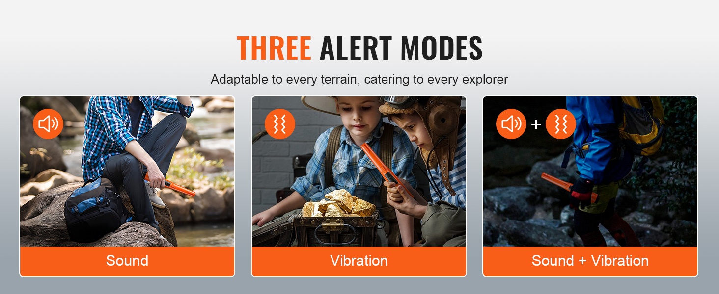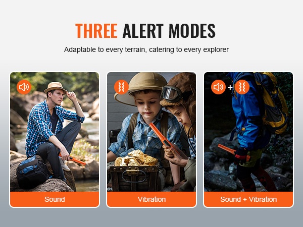 Laite tarjoaa 3 tilaa eri käyttötarkoituksiin. Äänitila toimii parhaiten maalla, värinätila sopii vedenalaiseen etsintään, kun näkyvyys on rajallinen. Ääni + värinä -tila on hyödyllinen meluisissa ympäristöissä, joissa ääni ei yksinään riitä.