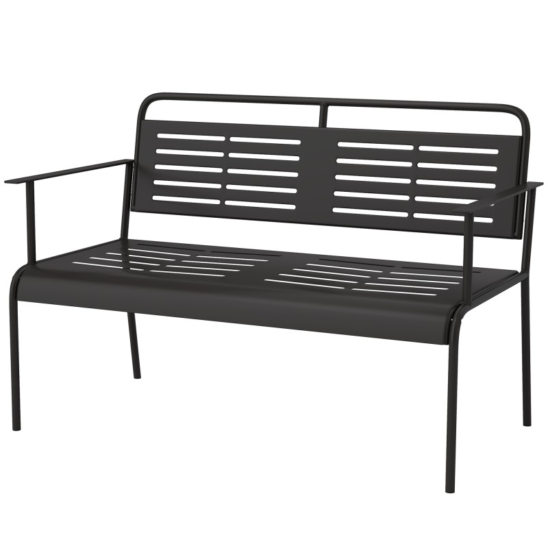 Kahden hengen puutarhapenkki, teräs, 121 x 64 x 84 cm, musta