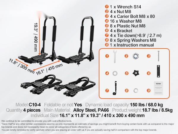 - Yksittäisen telineen koko: 20.1 x 6.3 x 14.6 tuumaa / 510 x 160 x 370 mm