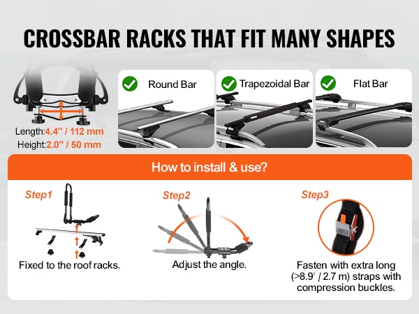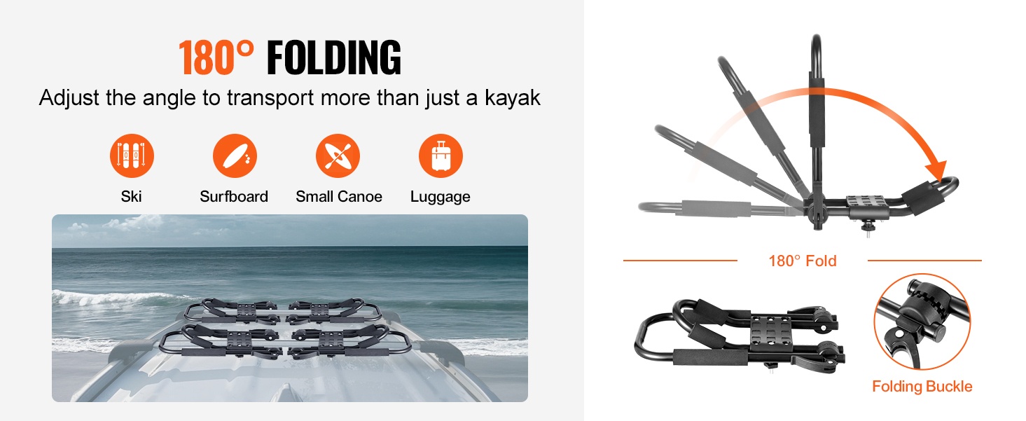 Erityinen J-mallinen, ei-taittuva teline sopii useimpiin erikokoisiin kajakkeihin sekä kanoottiin ja muuhun pitkään urheiluvälineistöön.