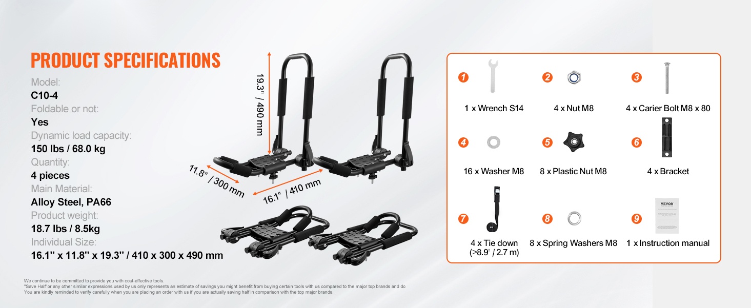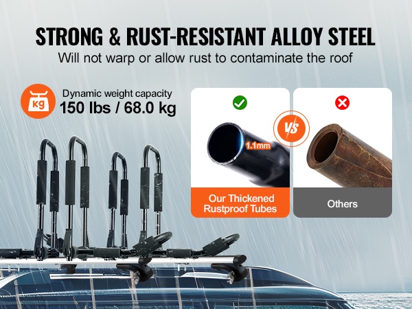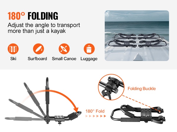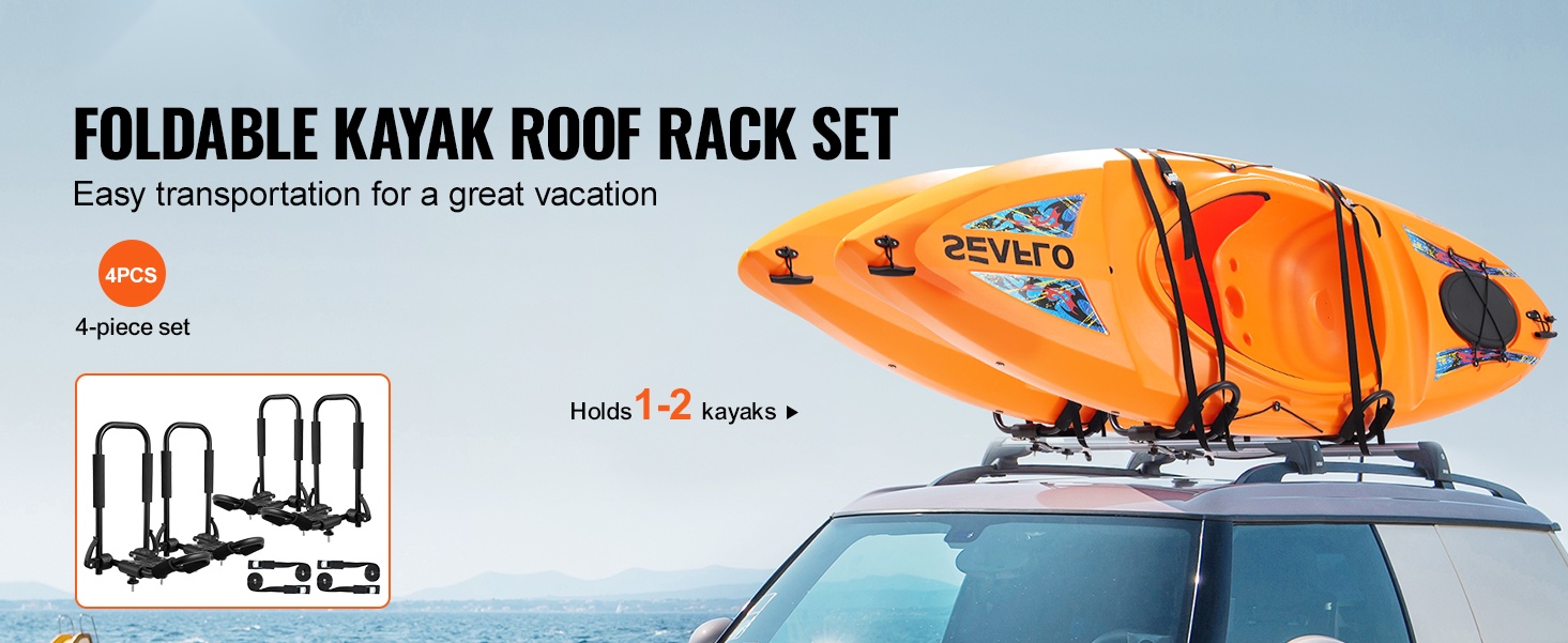 Tämä 2-in-1-kajak-kattoteline hyödyntää erityistä kaksois-J-rakennetta, jonka ansiosta 2 telinettä voivat kuljettaa jopa 2 kajakkia. Teline sopii kajakeille, kanootille, SUP-laudoille, surffilaudoille ja suksille, ja se voidaan asentaa useimpiin henkilöautoihin, maastureihin ja pickup-autoihin.