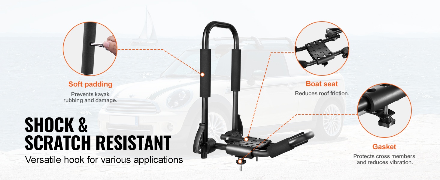 Kajakkipidikkeessä on erityinen suoja-alue naarmujen ehkäisemiseksi kajakkien osuessa telineeseen. Useat pehmeät paksut pehmusteet ja aluslevyt vähentävät kitkaa ja tärinää, mikä suojaa sekä kajakkia että auton kattoa kuljetuksen aikana.