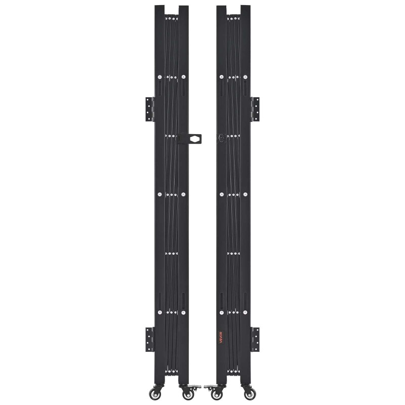 Kaksinkertainen taittuva teräsinen turvaportti 370 x 160,5 cm lukittavat 360° kääntyvät pyörät