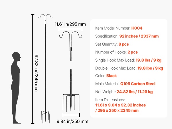 Kaksinkertainen ulkopaalu hiiliteräs säädettävä yhdeksänkymmentäviisi senttimetriä kaksi koukkua kahdeksan kappaleen pakkaus
