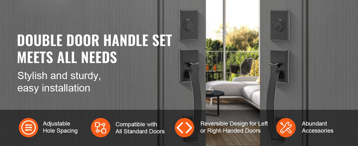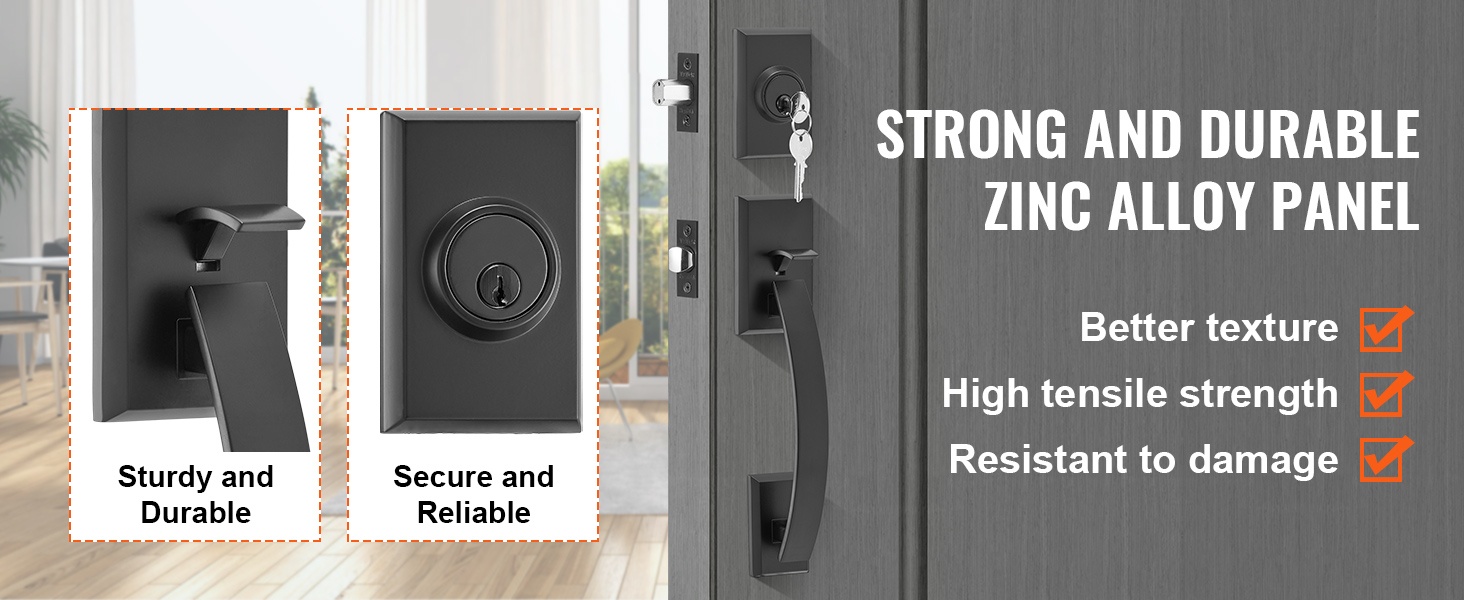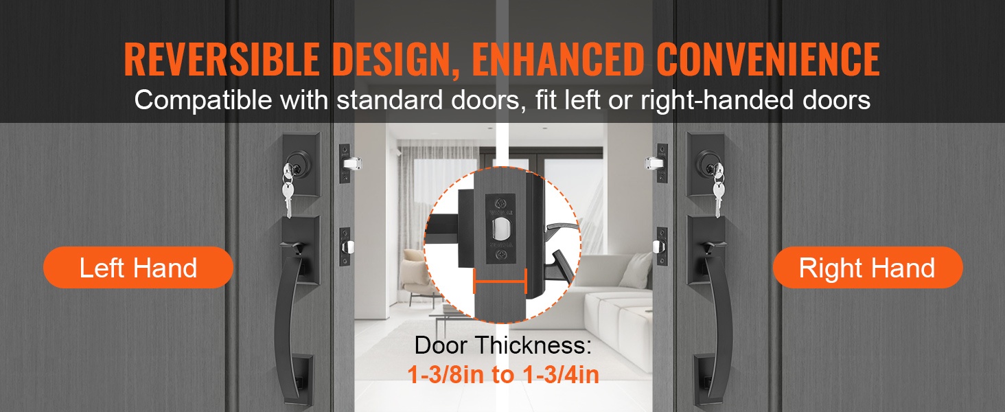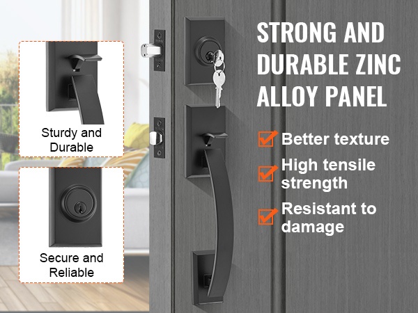Kaksiosainen etuoven kahvasarja sisältää kaksi korkealaatuista neliönmuotoista ovenkahvaa, jotka voidaan kääntää oikea- tai vasenkätistä ovea varten. Ulkopuolinen avainlukko ja sisäpuolinen turvalukko tarjoavat luotettavuutta ja turvallisuutta.
