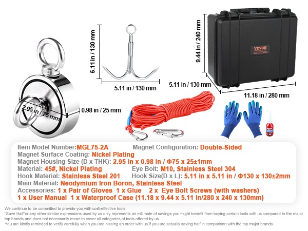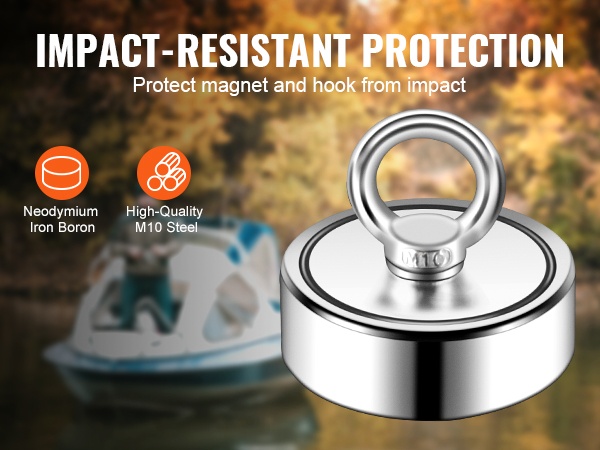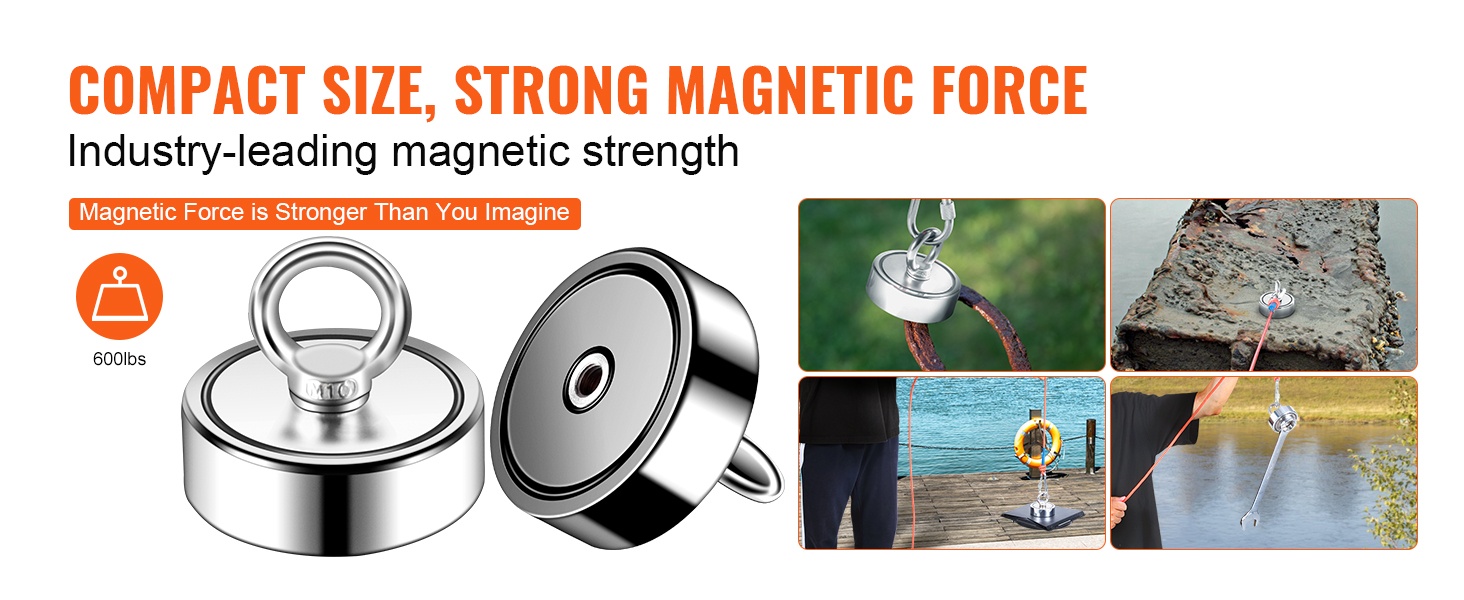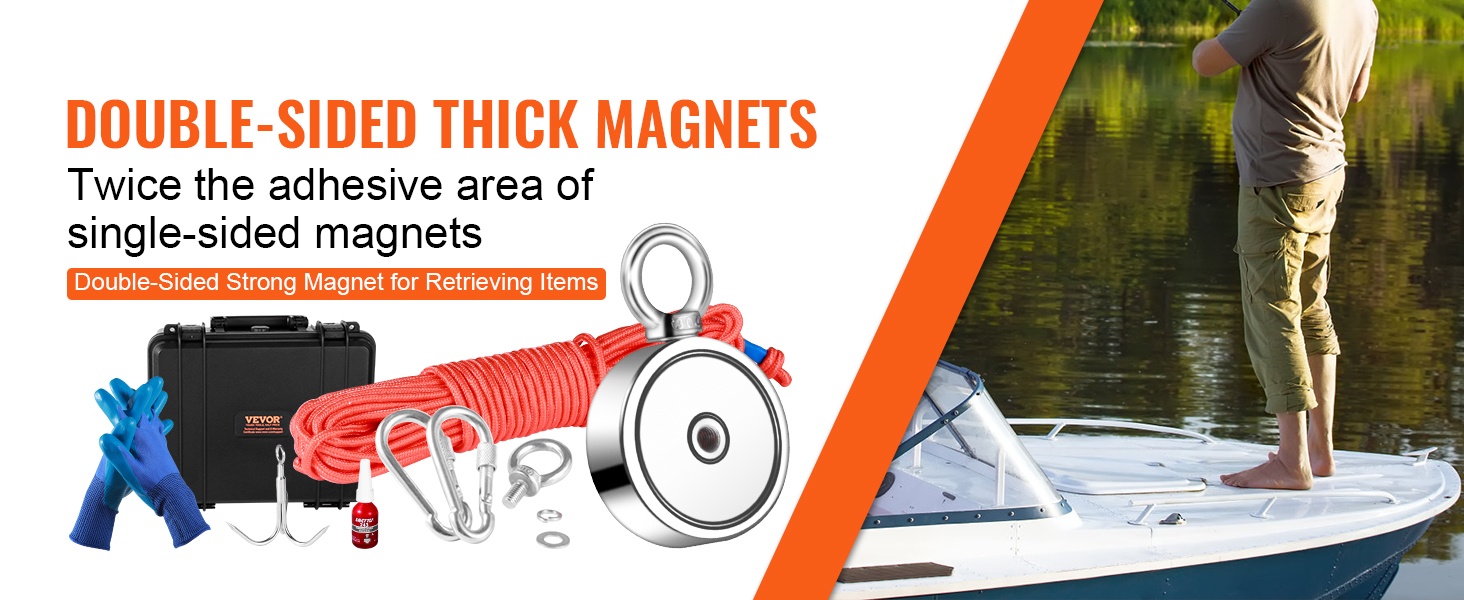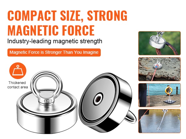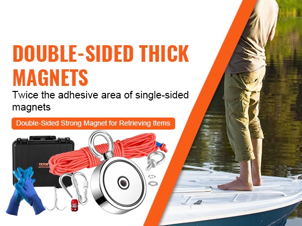 Tällä kaksipuoleisella magneettikalastussarjalla voit hyödyntää jopa 544.3 kg vetovoimaa kompaktissa koossa. Magneetin halkaisija on 7.5 cm, ja sen molemmat sivut tarttuvat metalliesineisiin, mikä antaa selvästi enemmän tehoa kuin yksipuoleinen magneetti.