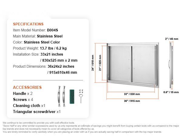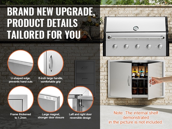 Tyylikäs ja käytännöllinen kaapin eristysovi ulkokeittiöön. Tarkat mitat helpottavat oviaukon valmistelua ja asennusta. Useiden kokojen ja tyylien ansiosta ovi tuo lisämukavuutta ulkogrillaukseen ja sopii monenlaisiin kokonaisuuksiin kotipihalla.