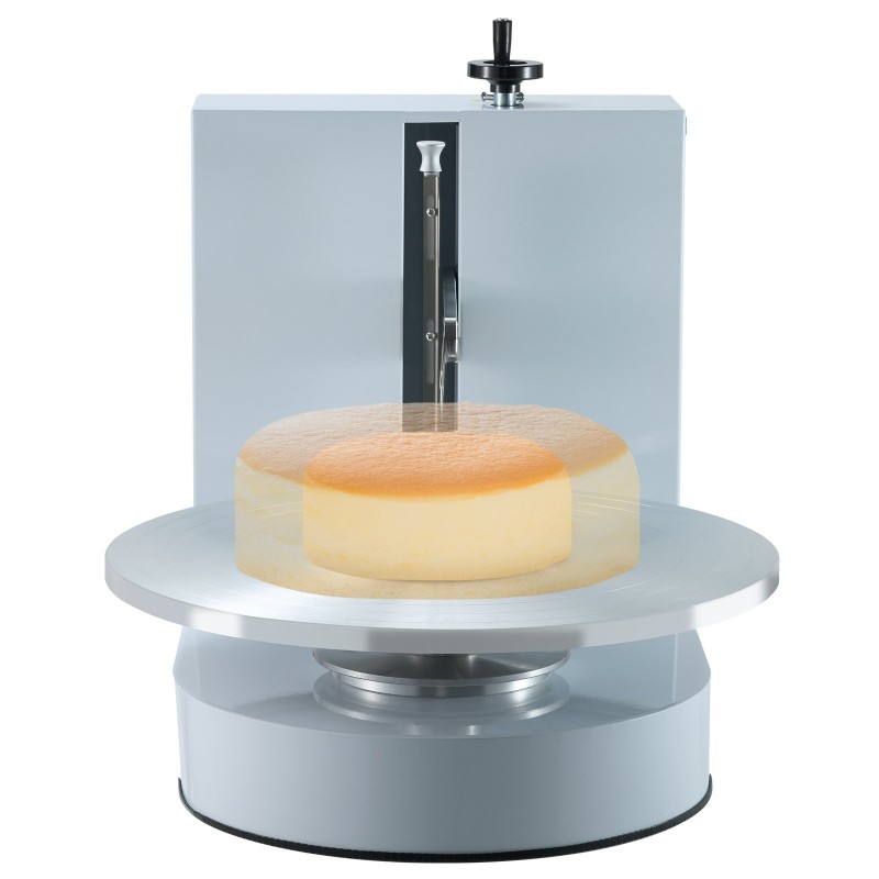 Kakunkoristelukone 4–16 tuuman kakkuihin 20 senttimetrin korkeuteen säädettävällä kaavimella valkoinen