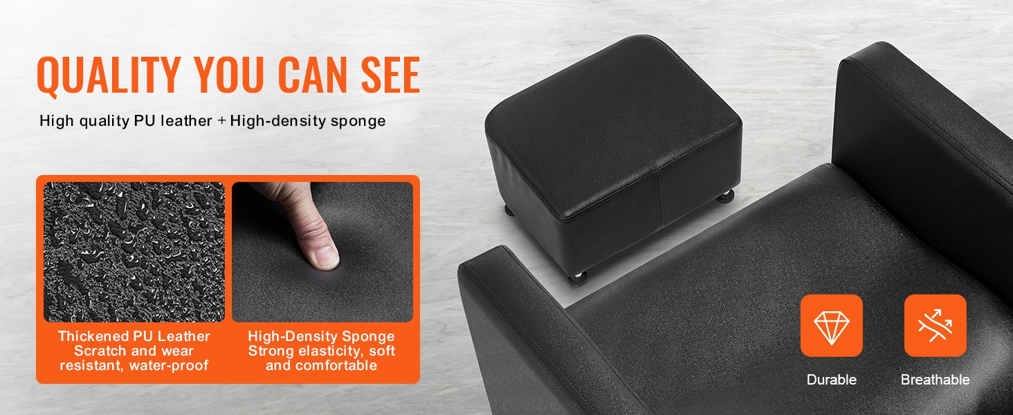 - Korkeatiheyksinen sieni ja PU-nahkaverhoilu mukavuuden takaamiseksi