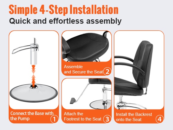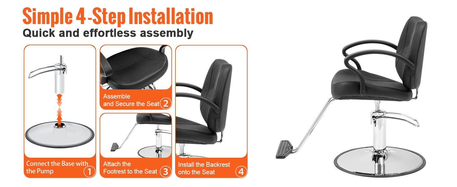 Tuoli toimitetaan selkeän ohjeen ja tarvittavien kiinnitysosien kanssa, joten kokoaminen onnistuu vaihe vaiheelta ohjetta seuraamalla. Hillitty ja tyylikäs ulkonäkö sopii kampaamoihin, kauneushoitoloihin, tatuointistudioihin, meikkistudioihin sekä kotikäyttöön.