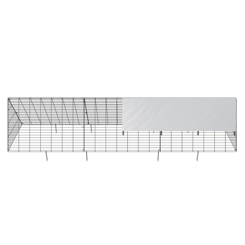 Ulkokäyttöön tarkoitettu tunneli on varustettu erityisesti suunnitellulla vedenpitävällä aurinkosuojakankaalla. Se auttaa ehkäisemään auringon aiheuttamaa rasitusta ja antaa riittävän suojan sadekuurojen aikana, jotta eläimet pysyvät kuivina ja hyväkuntoisina.