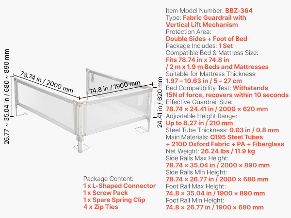 - Yhteensopiva sängyn ja patjan koko: sopii yhden sivun 2 m (78.74 in) sänkyihin ja patjoihin