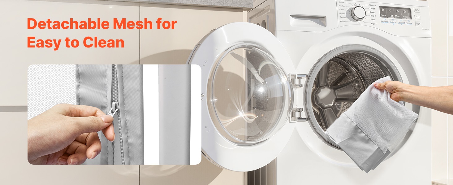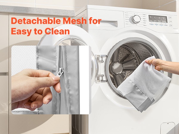 Verkkokankainen paneeli voidaan irrottaa vetoketjulla ja pestä pesukoneessa, joten puhtaanapito on nopeaa ja vaivatonta.