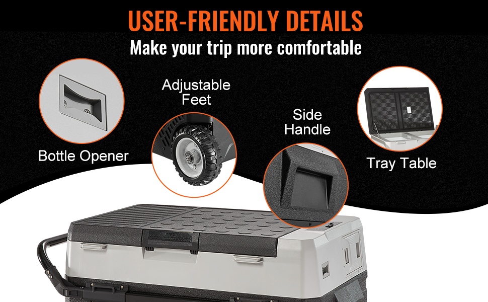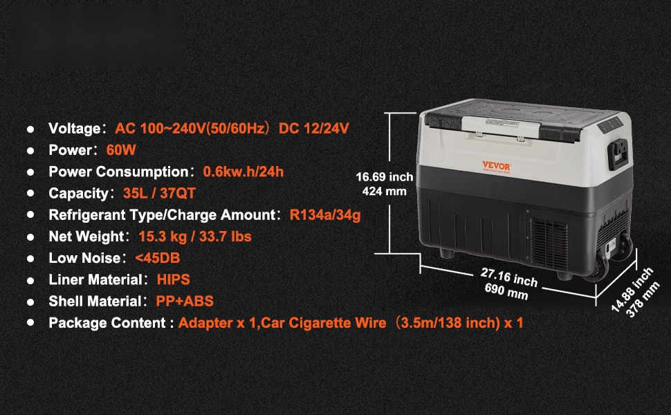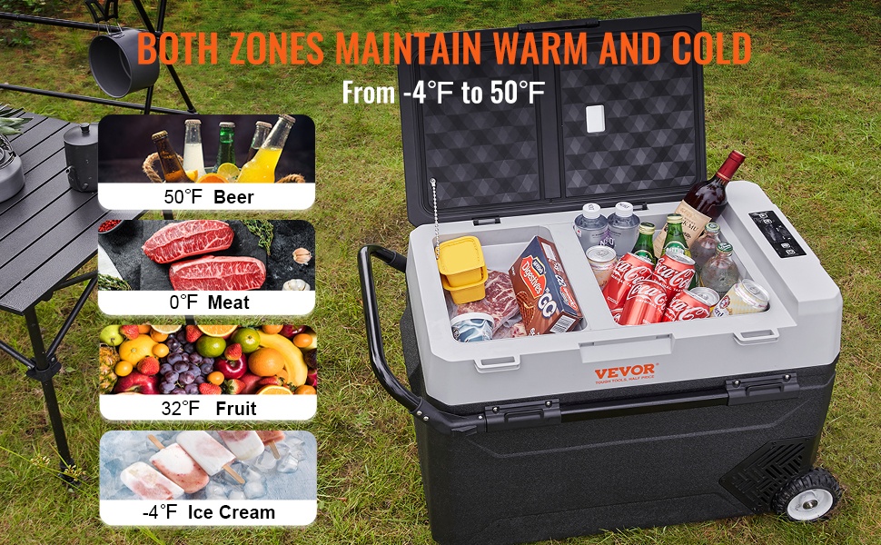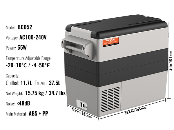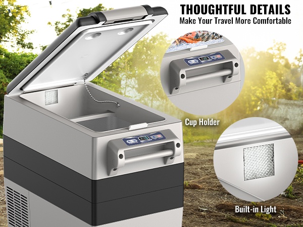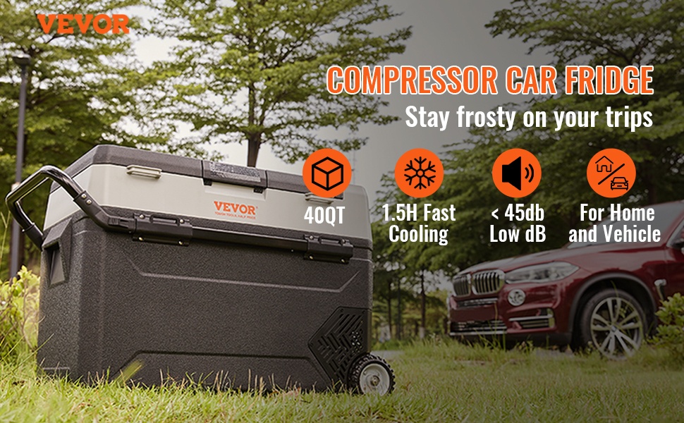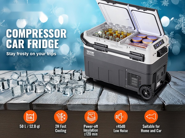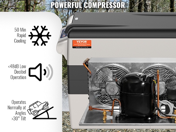 Tämä 58QT-autojääkaappi tarjoaa 54.9 L säilytystilaa juomille, ruoalle ja pakasteille niin autossa kuin kotona. Tehokas kompressori viilentää nopeasti ja pitää lämpötilan vakaana välillä -4°F – 158°F tarpeidesi mukaan.
