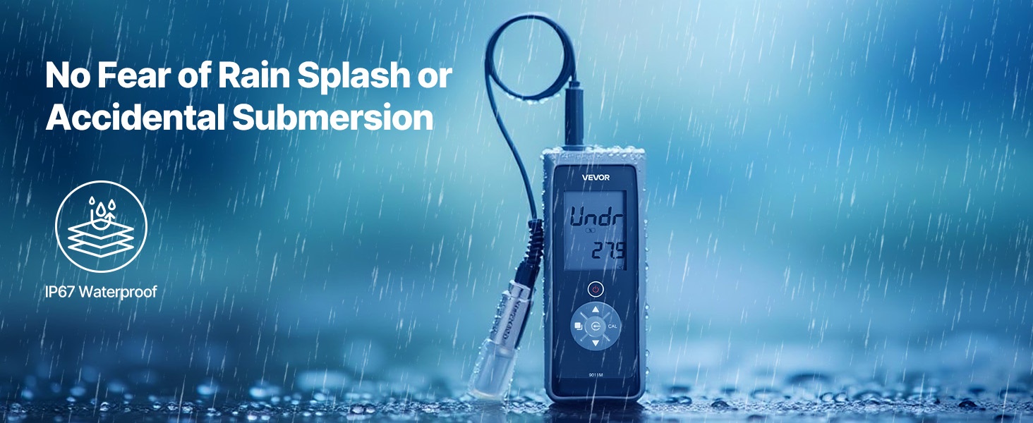 Sekä sateessa ulkona että matalassa vedessä työskenneltäessä tämä liuenneen hapen testauspakkaus pysyy toimintakunnossa. IP67-suojattu runko tarjoaa luotettavan suorituskyvyn erilaisissa mittaustehtävissä.