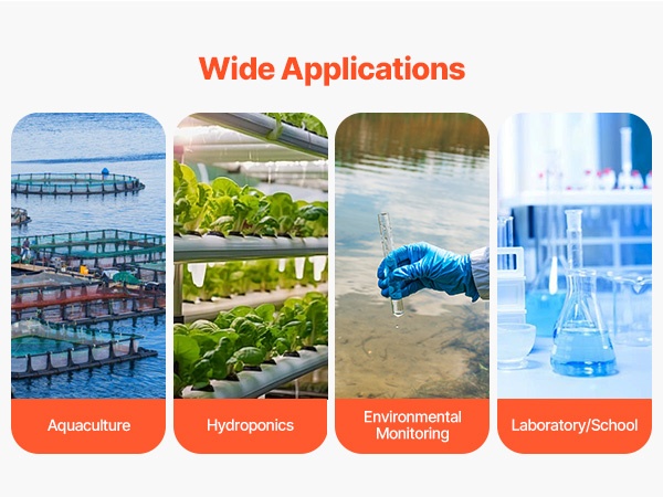 Lamppien hapenmittari soveltuu hyvin ympäristön seurantaan, vesiviljelyyn, jätevedenkäsittelyyn ja laboratoriotutkimuksiin. Se on tarkoitettu käyttäjille, jotka tarvitsevat tarkkoja liuenneen hapen mittauksia erilaisissa vesistöissä.