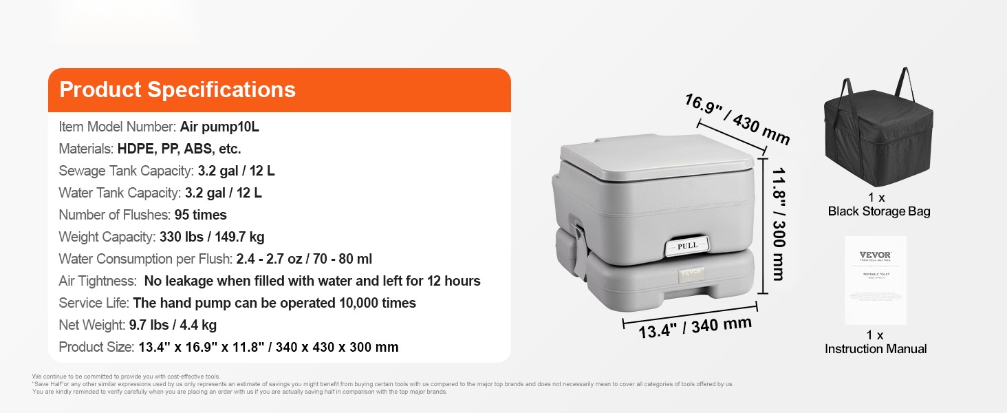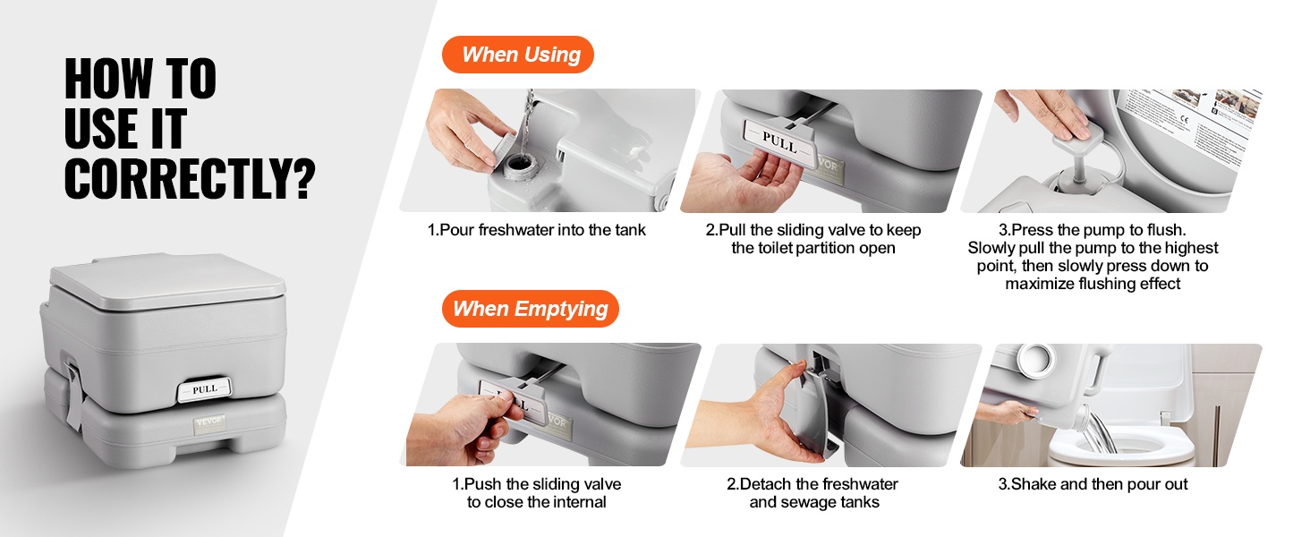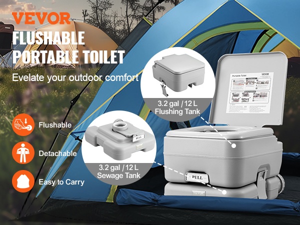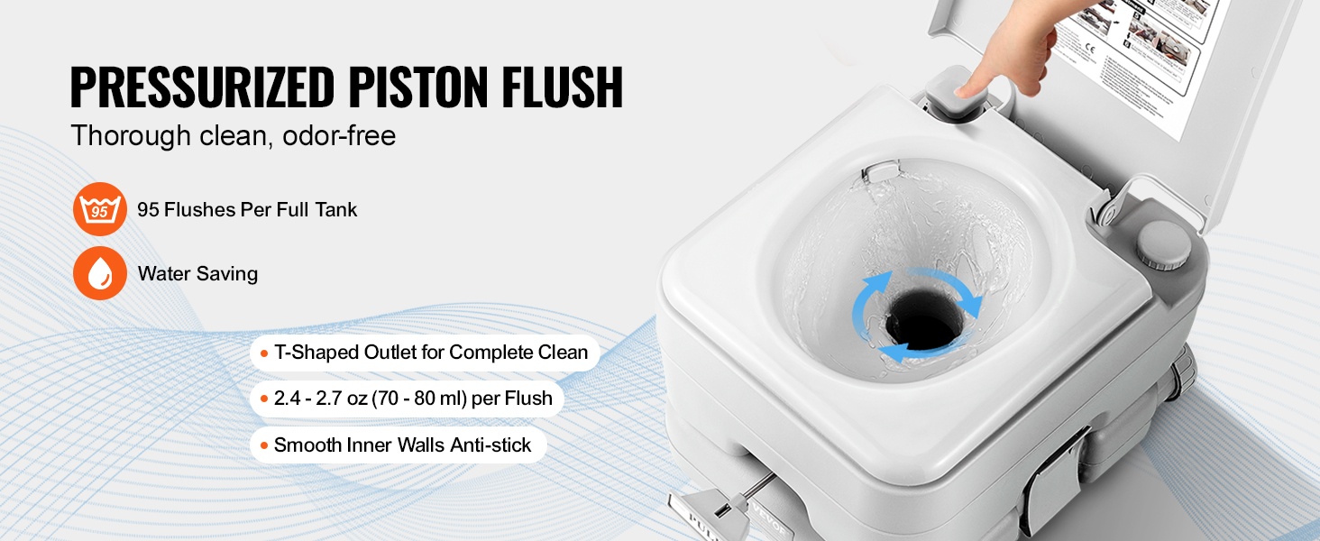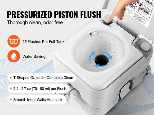 Tämä kannettava wc on kevyt ja helppo kuljettaa. Irrotettava 1.3 gal / 5 L sisäsanko tekee käytöstä ja tyhjentämisestä vaivatonta, ja wc mahtuu helposti auton tavaratilaan pitkille ajomatkoille, retkille ja muuhun liikkumiseen.