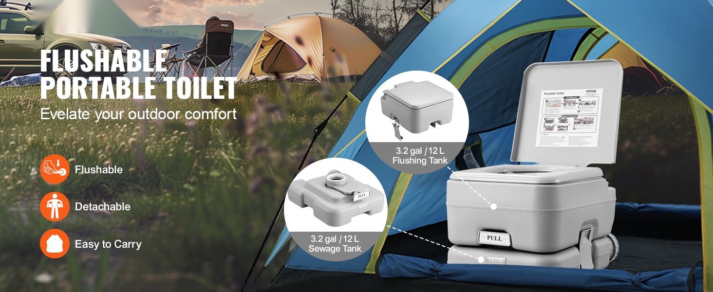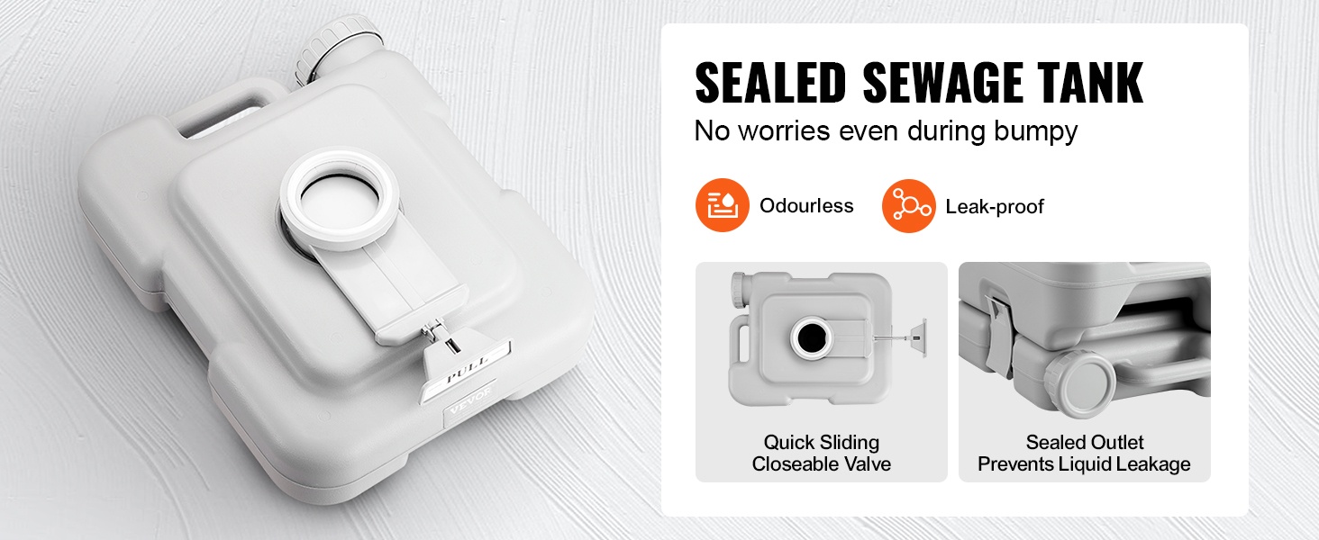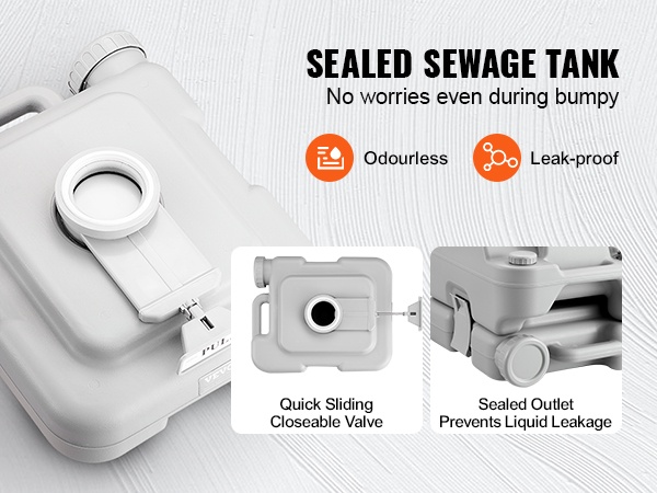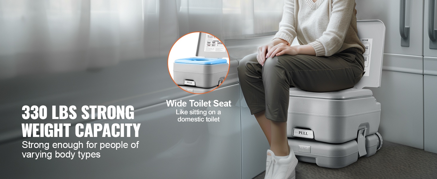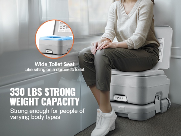 Tämä kannettava wc on kevyt ja helposti mukana kulkeva ratkaisu. Suurikapasiteettinen, irrotettava sisäsanko 1.3 gal / 5 L helpottaa käyttöä tien päällä, eikä sinun tarvitse etsiä julkisia vessoja kiireessä.