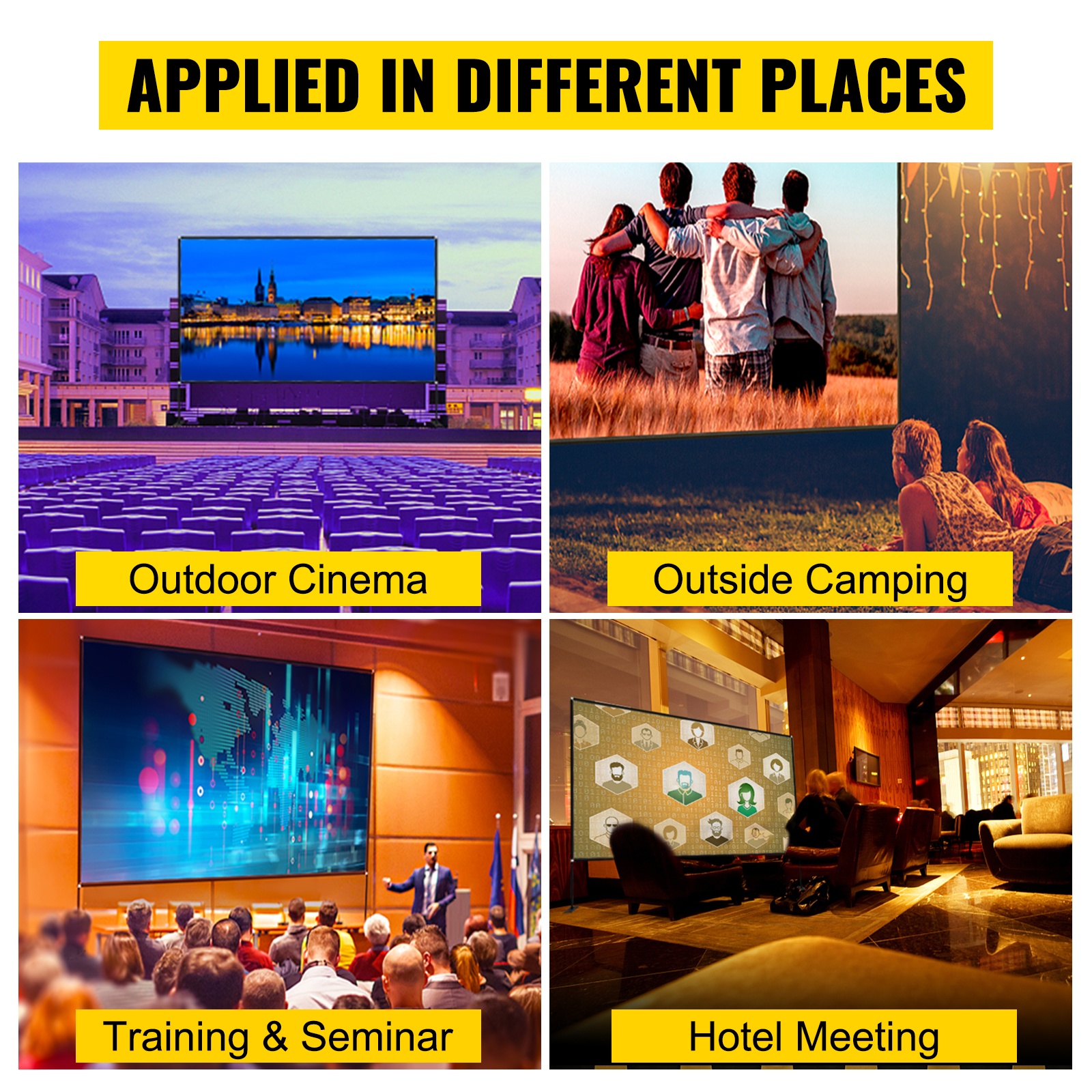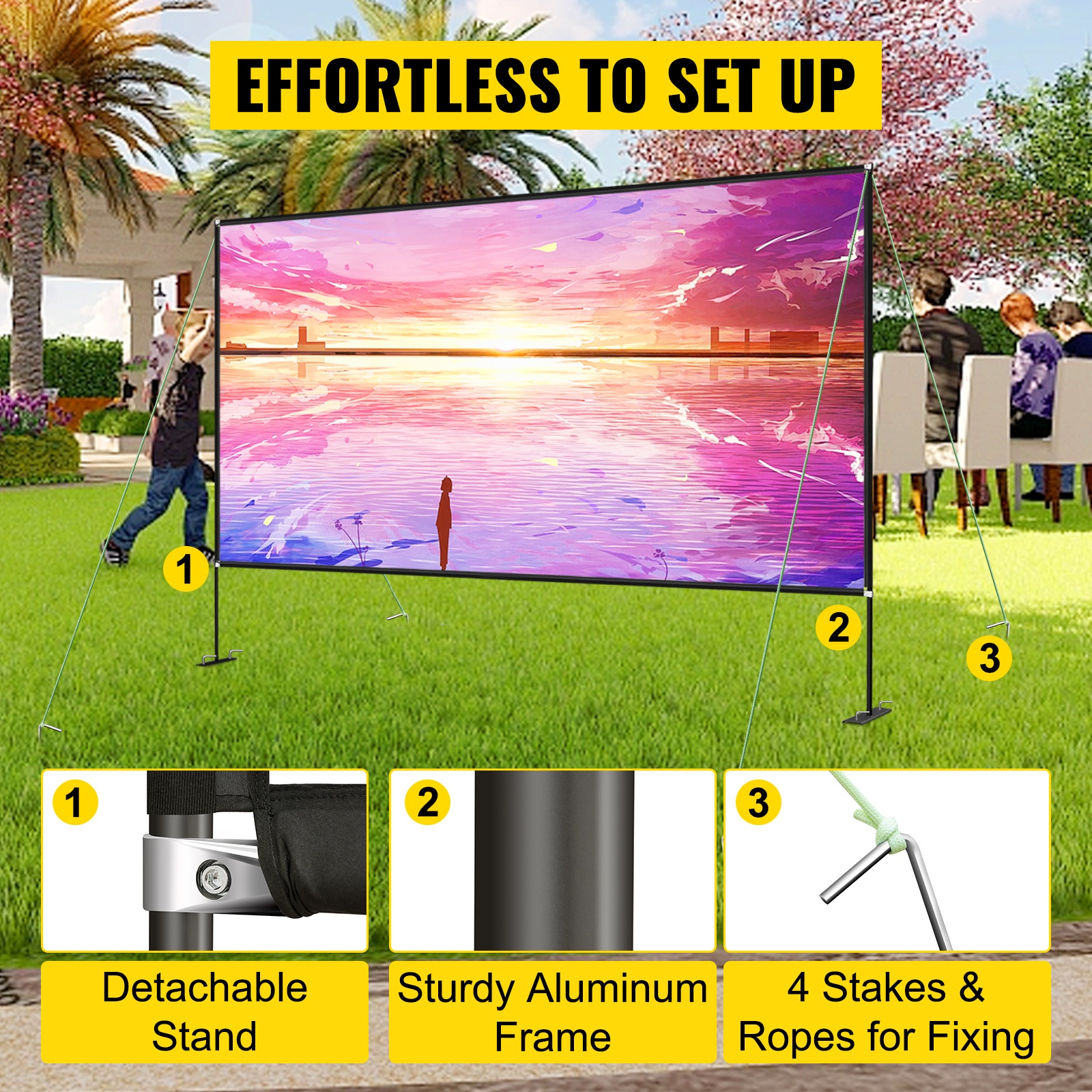 Kannettava valkokangas telineellä 150 tuumaa 16:9 kuvasuhde korkeatekstuuroitu oxford-kangas alumiini teräs