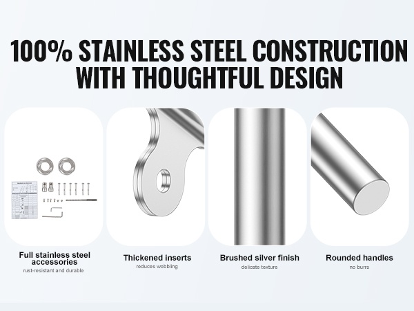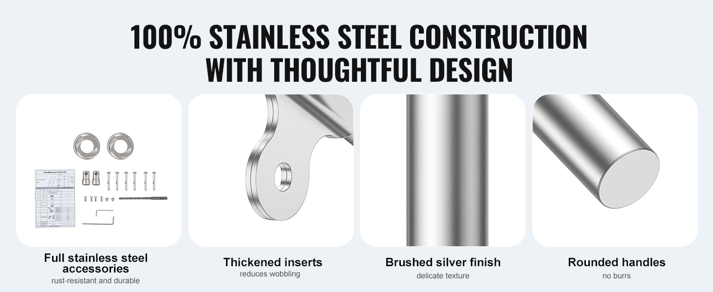 Käsijohde on valmistettu laadukkaista materiaaleista, ja tiiviit liitososat auttavat estämään ruostumista myös kosteissa ulko-olosuhteissa. Portaiden kulmaan mukautuva, sujuva säätö tekee siitä käyttökelpoisen monenlaisissa ympäristöissä.