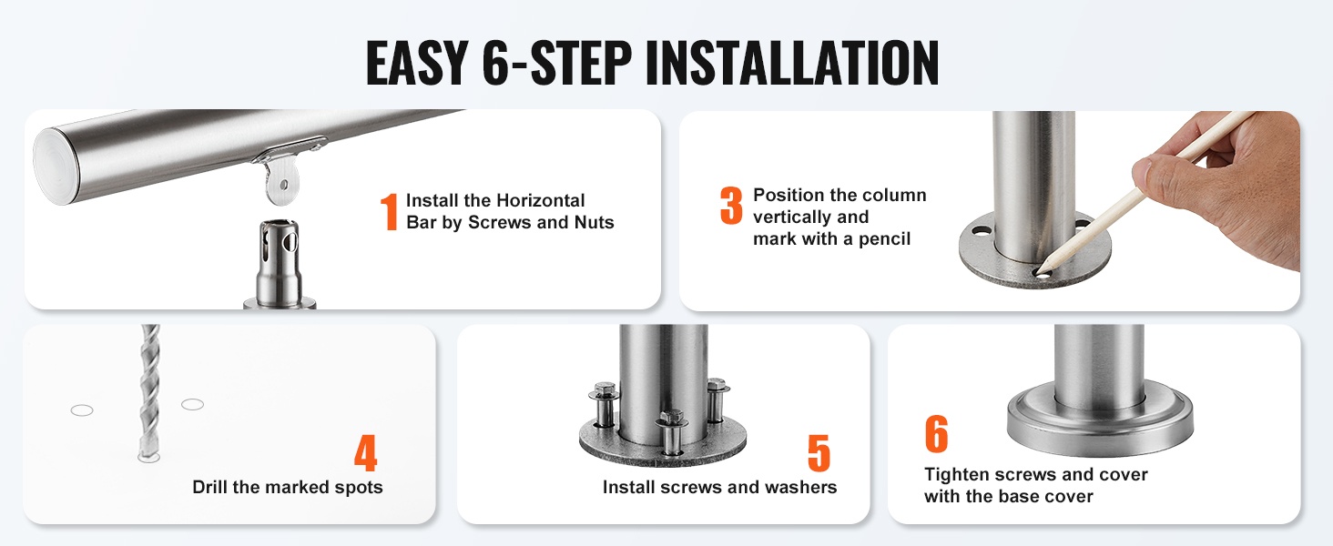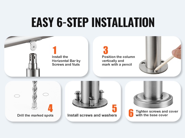 Käsijohde on helppo asentaa betonille, puulle, laatoille tai marmorille, joten asennus voidaan toteuttaa olemassa olevan portaan rakenteen mukaan.