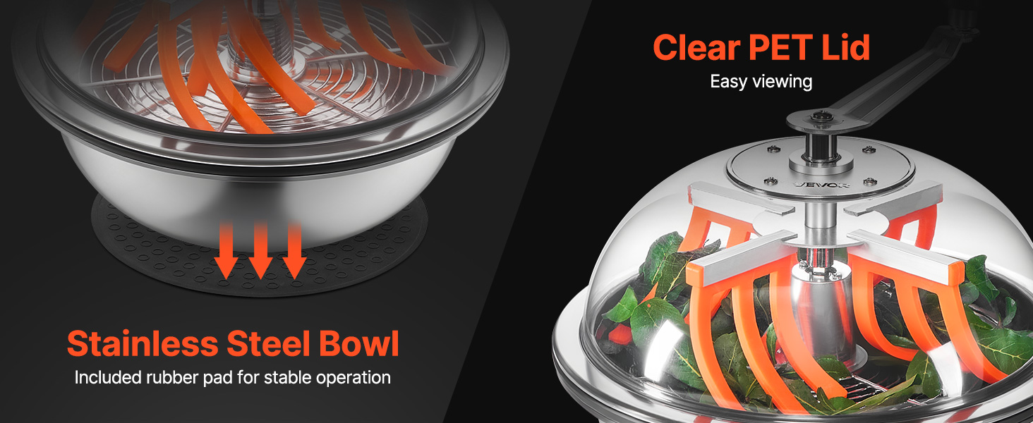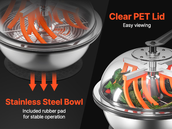 Manuaalinen silppurikulho kasvien lehdille ja nupuille 420 mm, ruostumaton teräs, läpinäkyvä kansi