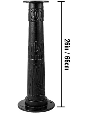 Käsikäyttöinen vesipumppu ja jalusta on valmistettu valuraudasta, mikä tarjoaa vahvan rakenteen ja tasaisen vedenvirtauksen. Jalustan korkeus on 26 tuumaa, joten pumpun käyttökorkeus nousee miellyttävämmälle tasolle. Sileä maalipinta suojaa runkoa ruostumiselta, ja perinteinen ulkoasu sopii hyvin pihalle, puutarhaan, lammikon reunalle tai maatilan kasteluun.