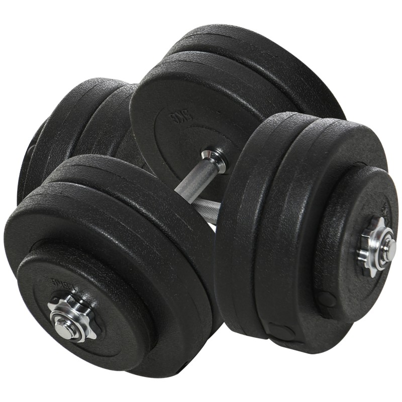Käsipainosetti 50 kg, säädettävä, teräs ja muovi, 2 tankoa, levypainot, musta